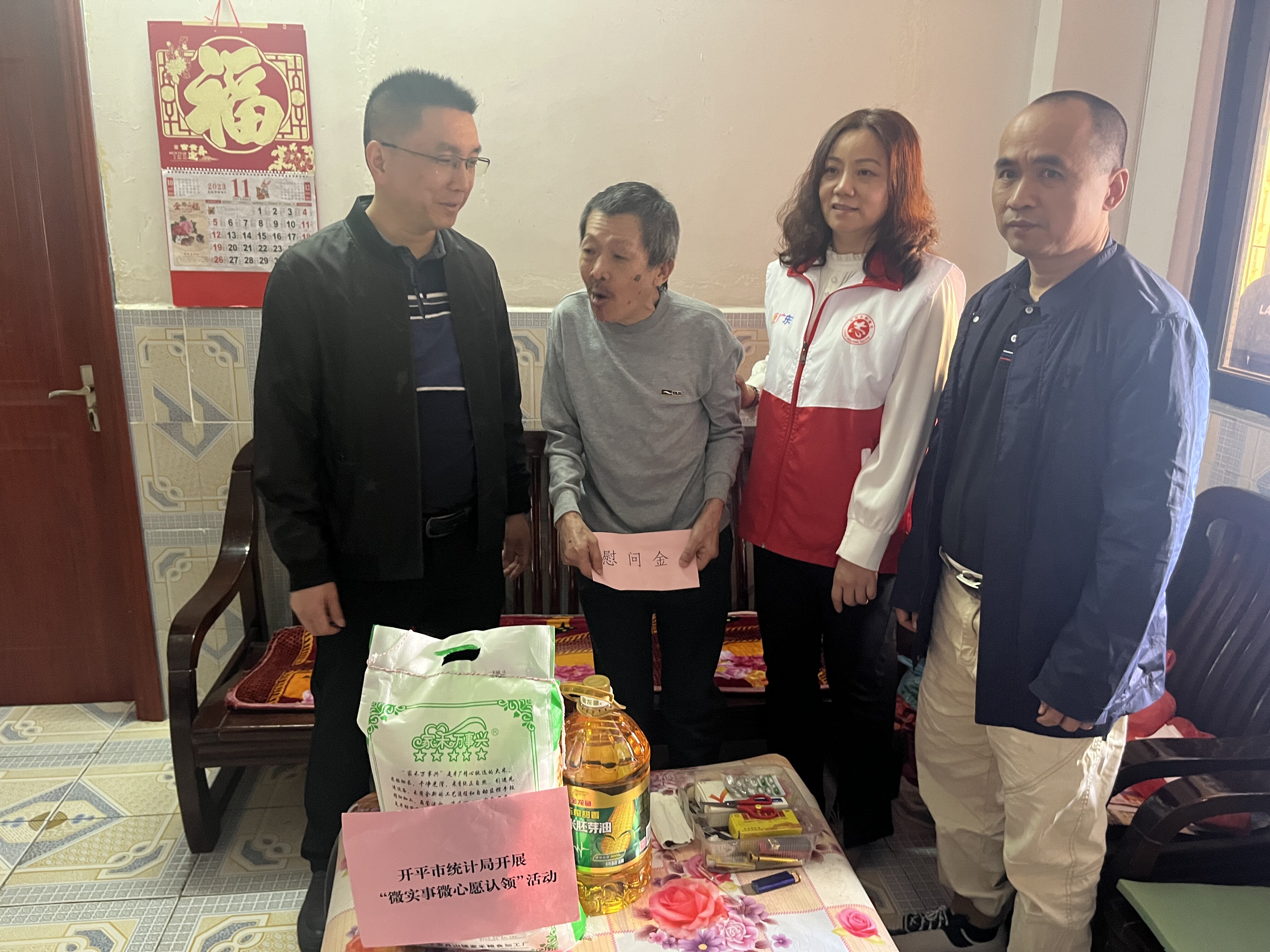 開平市統計局到新港社區開展“微實事微心愿認領”活動 為扎實推進“我為群眾辦實事”實踐活動常態化,將學習貫徹習近平新時代中國特色社會主義思想主題教育與為民辦實事相結合,充分發揮黨員的示范引領和先鋒模范作用,拉近黨員與群眾的關系,近日,市統計局組織黨員干部下沉新港社區開展“微實事微心愿認領”活動,幫助轄區困難群眾圓夢微心愿,把黨的溫暖送到居民的心坎上。 新港社區通過前期走訪,了解困難家庭的生活情況和當前遇到的實際困難,梳理形成“微心愿”清單,統計局組織黨員干部積極認領并完成群眾“微心愿”。活動當天,黨組書記李健鵬同志為困難家庭送去米、油等生活物資和慰問金,并與其親切交談,關切地詢問他們的身體、生活狀況以及存在的困難,鼓勵他們要堅定信心,積極樂觀地面對生活,今后如有困難及時向社區尋求幫助。 在交談中了解到其中一戶飛叔因年紀大不會用智能手機而無法進行養老資格認證,“來,看手機屏幕,眨一下眼睛,張一下嘴巴,好了,認證成功。”黨員志愿者手把手幫助飛叔完成認證,保障了能按時領取養老金。 本次微心愿活動,為社區居民帶來了關愛和溫暖,將“我為群眾辦實事”落到了實處,也彰顯了統計局黨員干部的擔當作為。今后,統計局將繼續以習近平新時代中國特色社會主義思想為指引,落實黨員干部聯系服務群眾制度,推動黨員干部到社區開展志愿服務,以小見大,用心用情服務身邊人辦好身邊事。