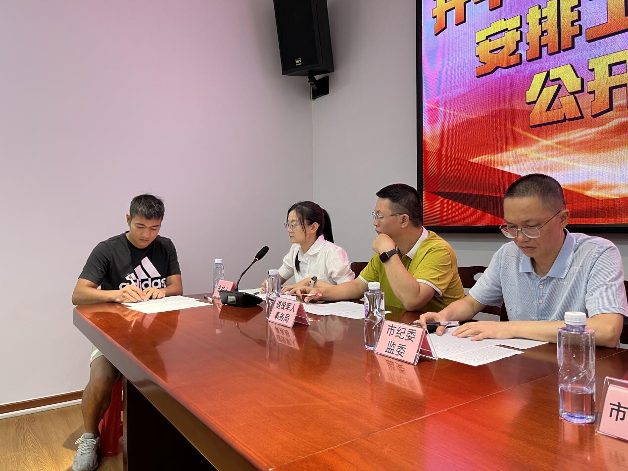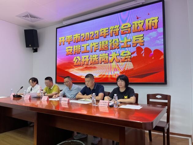 8月10日,開平市組織開展2023年符合政府安排工作條件退役士兵公開選崗大會。市紀委監委、市委編辦、市人社局、市退役軍人事務局等單位相關負責同志以及符合政府安排工作退役士兵參加會議。