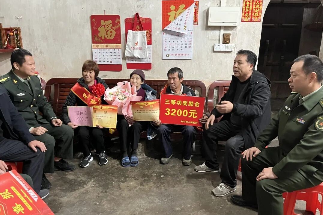 為弘揚擁軍優屬、擁政愛民的光榮傳統,激發部隊士兵安心服役、建功軍營、獻身國防的政治熱情,近日,開平市退役軍人事務局、市人民武裝部和塘口鎮一行組成慰問團,分別到潭溪鳳社村和升平龍興村,為榮立三等功的現役軍人謝曉文和周逸成的家屬送去喜報。
