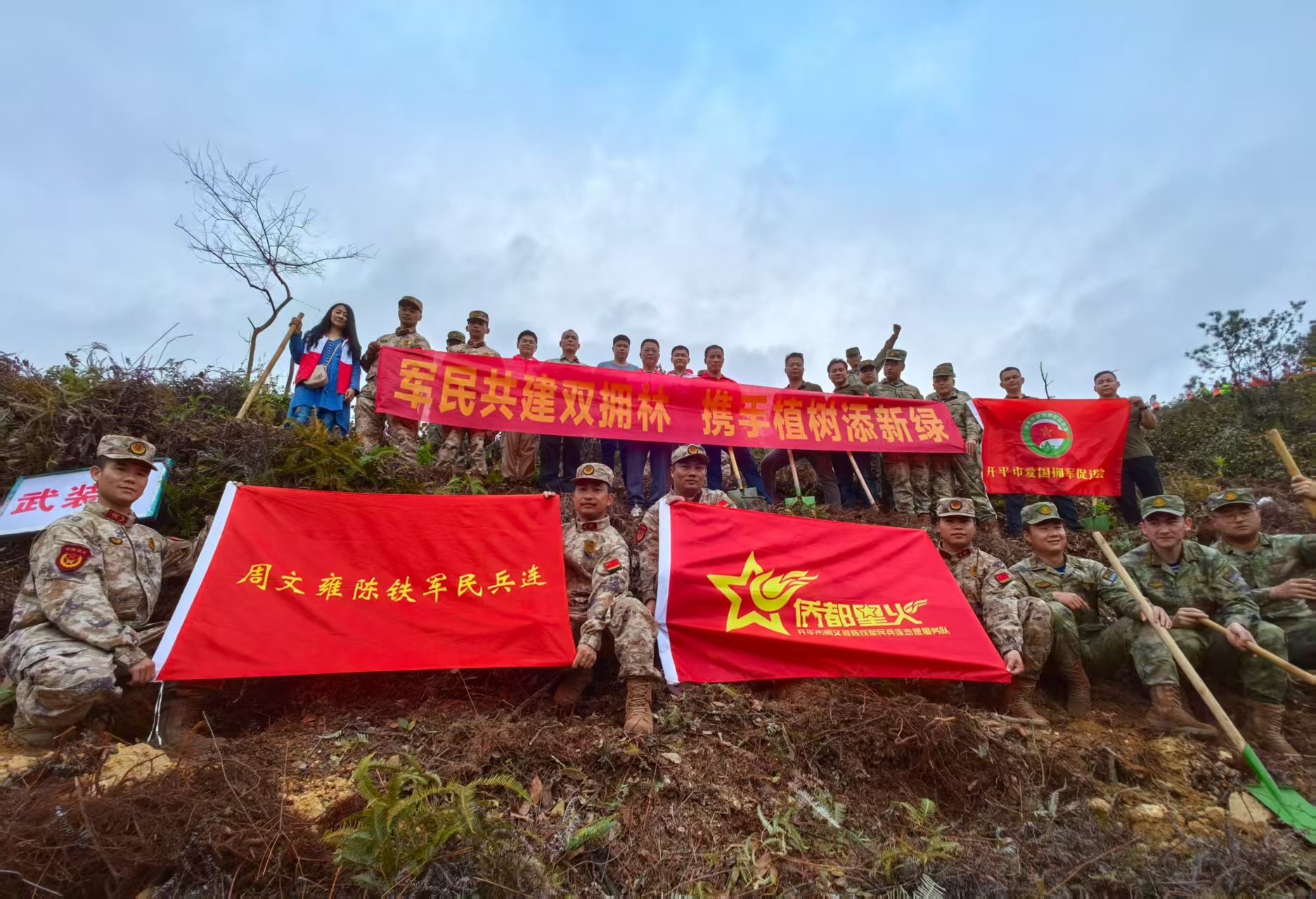 揮鍬疊翠千峰秀,灑汗澆霖萬綠茵。此次義務植樹活動,是開平軍地雙擁共建工作的一次生動實踐,既為綠美廣東生態建設貢獻了堅實力量,也進一步增進了軍政軍民之間的團結與信任。展望未來,開平市雙擁辦將持之以恒推動軍民共建活動向縱深發展,凝聚起軍民的磅礴力量,為地方發展和生態建設書寫更加輝煌的嶄新篇章。