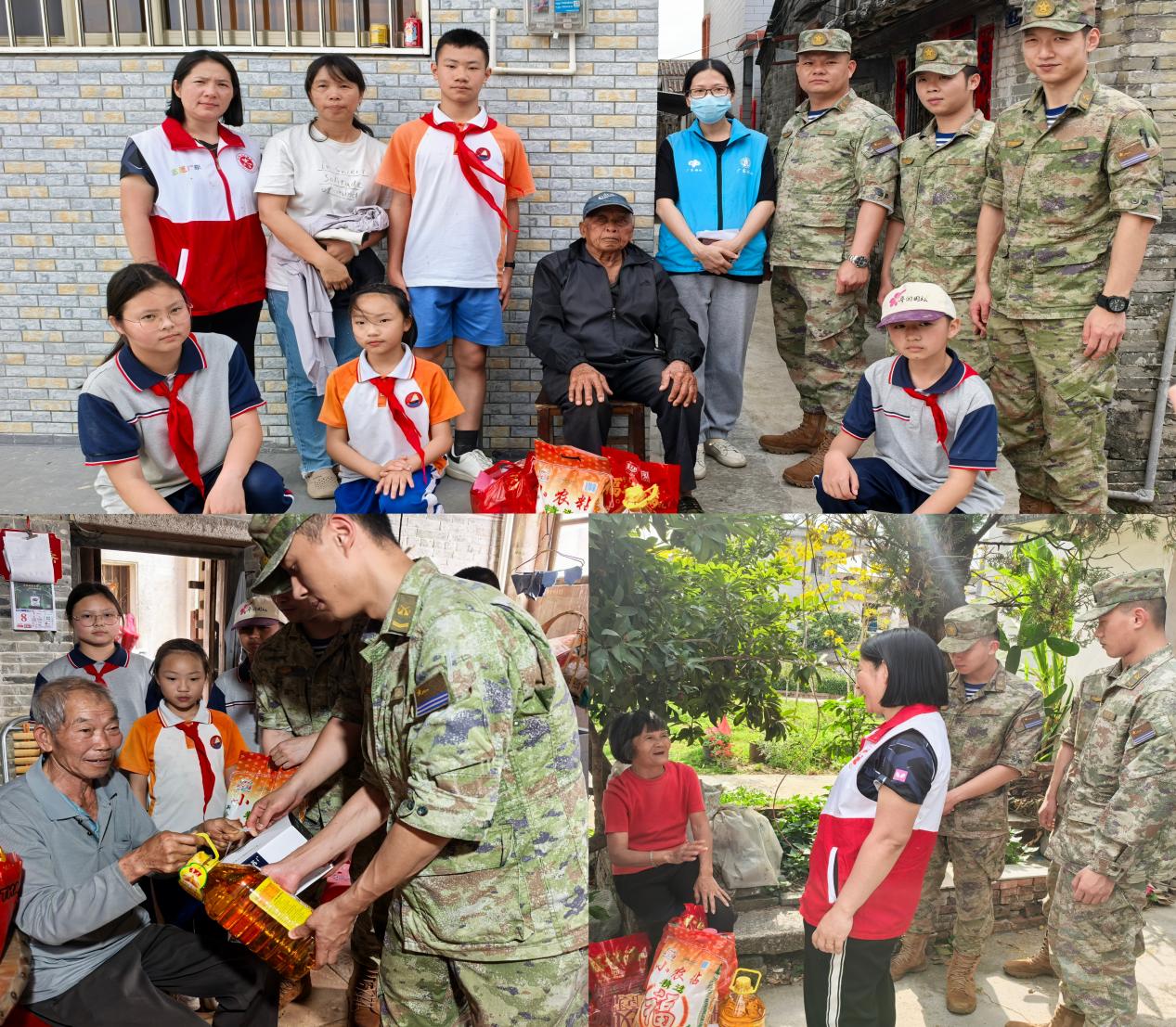最后,部隊官兵帶著精心準備的慰問品,走進孤寡老人家中。他們親切地陪老人聊天,仔細詢問老人的身體狀況和生活需求。貼心的關懷讓老人們感受到了部隊和社會的關愛,臉上洋溢著幸福的笑容。而學生們也在付出中學會了關愛他人、尊重長輩。周爺爺感動得熱淚盈眶:“感謝你們一直惦記著我們,讓我們心里特別溫暖?!?/span>