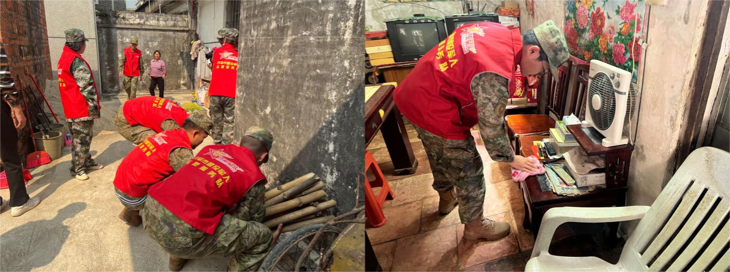 平時學雷鋒,戰時敢沖鋒。開平市人武部、駐開平部隊和開平市退役軍人事務局黨員義工隊以及僑都星火退役軍人志愿服務隊聯合到百合鎮茅岡村開展鄉村振興志愿清掃活動,對村內垃圾雜物、公共設施等進行集中清理,充分發揚了不怕臟、不怕累的頑強拼搏精神。駐軍官兵把開平當作第二故鄉,常年堅持為駐地群眾做好事、辦實事,以實際行動踐行雷鋒精神、夯實軍民共建基礎。看著他們忙碌的身影,村民感慨萬千:“這些小伙子經常來幫忙,每當我問起姓名時,他們都會說自己是人民的子弟兵,‘雷鋒兵’做好事不留名?!?/span>