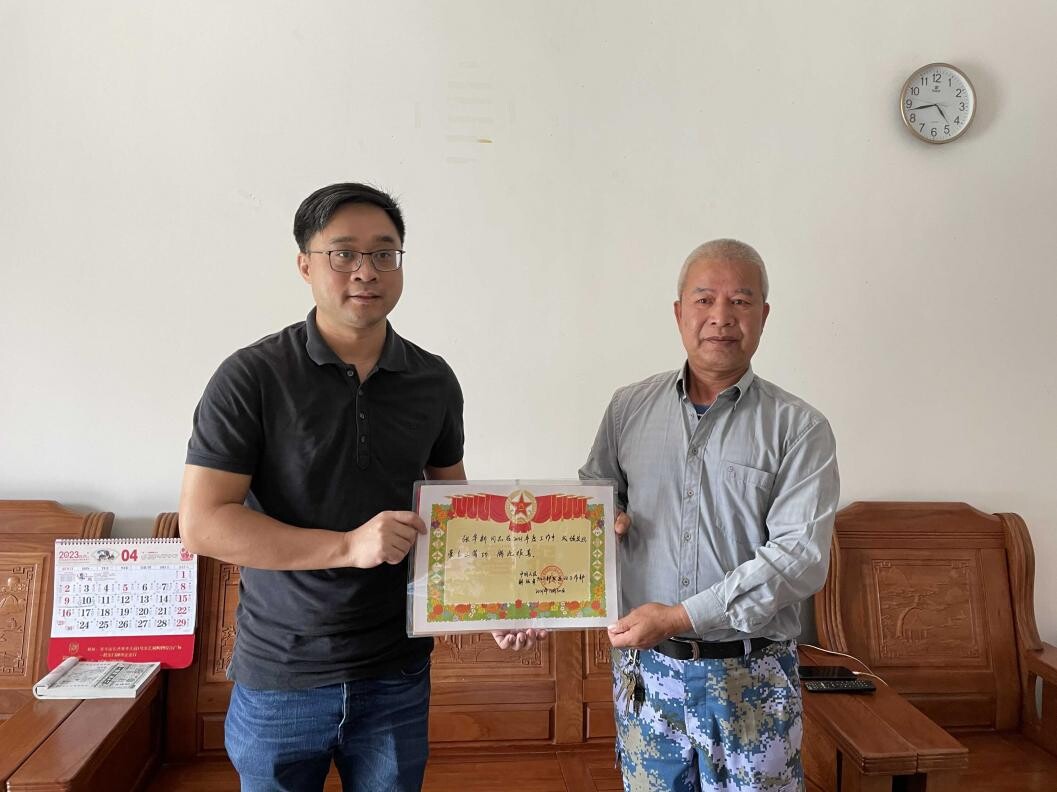4月13日,赤水鎮人民武裝部、鎮退役軍人服務站工作人員走訪慰問高山村現役軍人張華新家屬,并送上“三等功”喜報,對張華新在部隊里取得的優異成績表示祝賀。