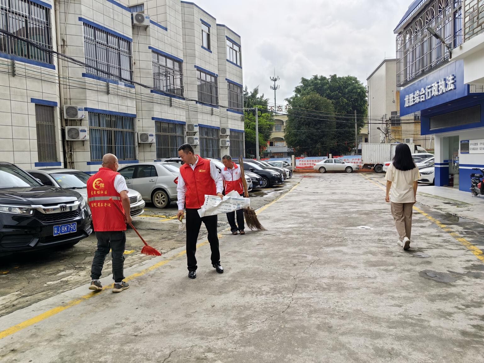 張健鋒(左二):1995年入伍,1998年退役,服役期間榮立三等功1次、嘉獎2次,優秀士兵2次;現任龍勝鎮龍勝墟社區書記、主任、退役軍人服務站站長,獲評2021年度開平市優秀共產黨員、2022年度江門市基層退役軍人服務站先進工作者。他凡事親力親為,帶領社區干部清理雜物障礙物、耐心勸導亂停車亂堆放等不文明行為,協助配合龍勝鎮開展創文創衛工作,社區面貌發生巨大變化;他充分發揚嚴守紀律、敢打硬仗的精神,加強基層黨建管理,積極推進精神文明和物質文明兩手抓,讓軍人本色在鄉村振興中閃閃發亮。