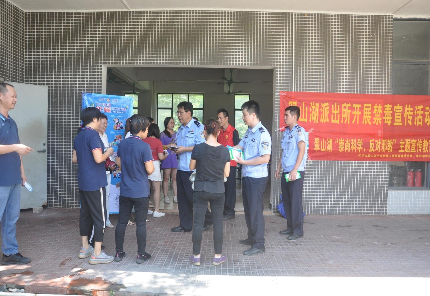 李錦漢(右五):1990年入伍,1993年退役;現任開平市公安局翠山湖派出所副所長,從警以來先后榮立個人二等功1次、個人三等功3次、榮獲2017年度全國優秀人民警察。他組織、指揮了一系列有影響的大案要案的偵破工作,帶領民警輔警走街串巷,實現“白天見警徽,晚上見警燈”,用血肉之軀守護僑鄉安寧。他借助送溫暖、基層走訪和主題宣傳等方式,進學校、入工廠、落社區開展禁毒、預防詐騙犯罪、掃黑除惡等宣傳活動,有效提高群眾預防意識。