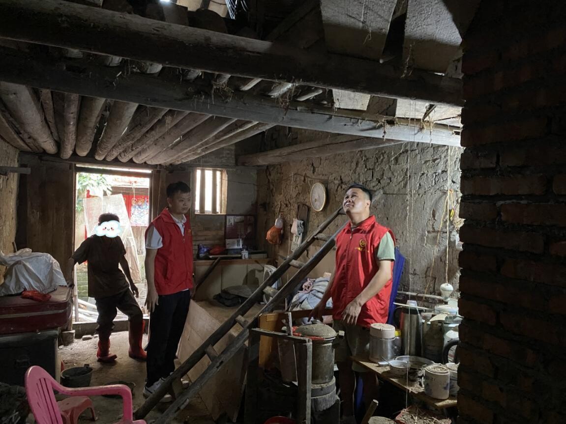 “張伯,打臺風了,外面刮大風下暴雨了,您住的房子年久失修,存在安全隱患,需要馬上撤離。”蒼城鎮(zhèn)六合村退役軍人張達進在巡查中了解到慶橋村小組后山有兩名五保戶老人在茅舍和簡易泥磚房居住,存在重大安全隱患。