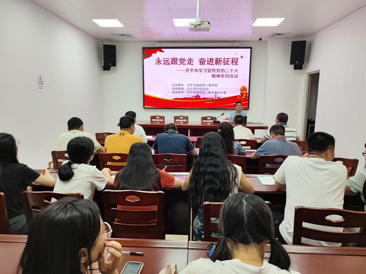 為全面貫徹落實黨的二十大精神,推動黨的二十大精神學習走深走實,加強成就宣傳和形勢政策教育,9月26日,開平市退役軍人事務局邀請市委黨的二十大精神宣講團成員林偉龍講授專題黨課,局機關及下屬事業單位全體黨員干部職工參加學習。