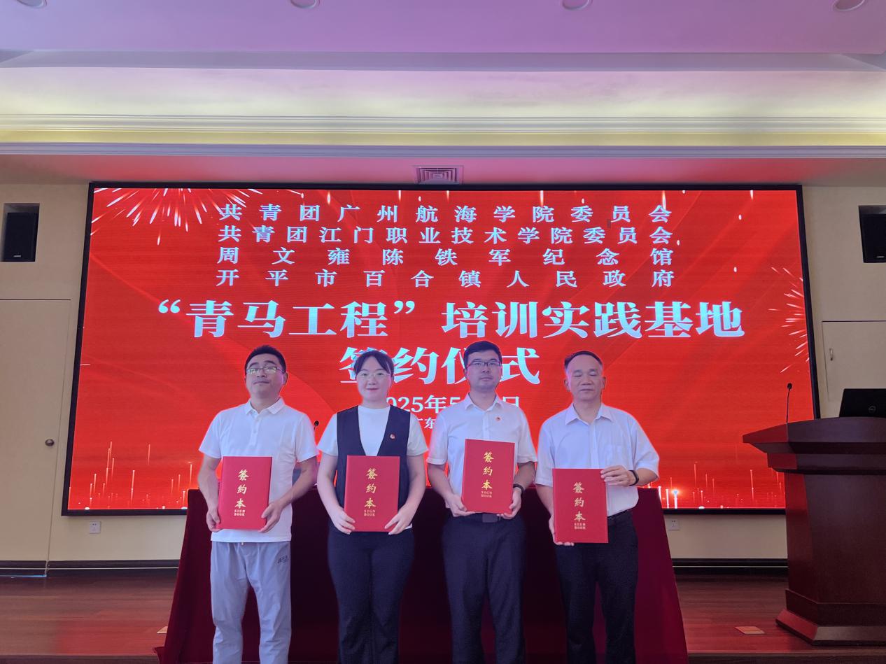 近日,廣州航海學院、江門職業技術學院“青馬班”培訓實踐基地在周文雍陳鐵軍烈士紀念館掛牌。雙方簽訂館校合作協議,開展“青馬”學員培訓講座,參觀展館研習周文雍夫婦革命事跡。廣州航海學院黨委副書記、江門職業技術學院黨委副書記、百合鎮分管黨建副書記、百合鎮“雙百行動”分管領導、退役軍人事務局領導出席。