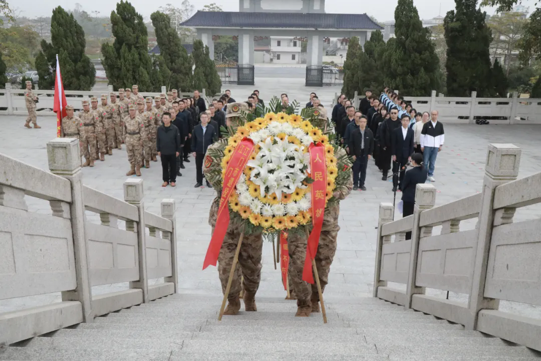 上午9時30分,紀念活動正式開始。全體人員面向周文雍陳鐵軍烈士紀念碑莊嚴肅立,齊聲高唱中華人民共和國國歌。國歌唱畢,全場垂首默哀,深切緬懷為民族獨立、人民幸福英勇獻身的周文雍陳鐵軍烈士。隨后,“周文雍陳鐵軍民兵連”民兵代表拾級而上,將花籃整齊地擺放在紀念碑前,紅色緞帶上“烈士永垂不朽”的金色大字熠熠生輝。隨后,全體人員依次緩步上前敬獻鮮花,并繞碑瞻仰,追思革命先烈的豐功偉績。