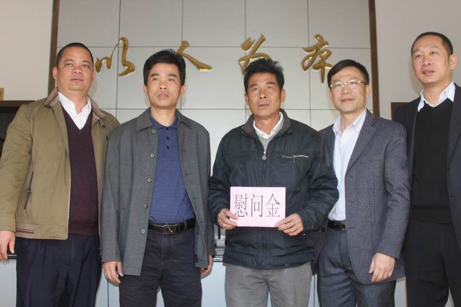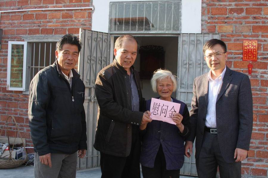 近日,市政協副主席黃繼燁帶領市文廣新局、市供銷社、市郵政局、中國銀行開平支行、人保財險開平支公司等5個幫扶單位主要領導、分管領導、駐村干部等一行10多人,深入到掛鉤扶貧點馬岡鎮紅豐村委會,開展扶貧調研工作,走訪慰問了結對幫扶的7戶貧困戶,給貧困戶送上慰問金和慰問物品。 在紅豐六圩村貧困戶梁偉能家中,黃繼燁副主席代表扶貧組給梁偉能一家送上了節日慰問金和慰問品,并與梁偉能一家進行了親切交談,祝福他們新春快樂。黃繼燁副主席還發動熱心企業向因災房屋倒塌困難戶關菊英捐贈1.7萬元用以裝修房子,并祝福他們安度新春。 其他幫扶單位也分別到掛鉤幫扶的困難戶家中進行了慰問。駐村干部闞洪鋒自己出錢給梁偉能家庭送來了一臺新的冰箱,這種助人為樂的精神,受到大家的敬佩。紅豐村委會和各困難戶對幫扶組表達了衷心感謝。(市文廣新局) 給困難戶送上慰問金 給村委會送上慰問金