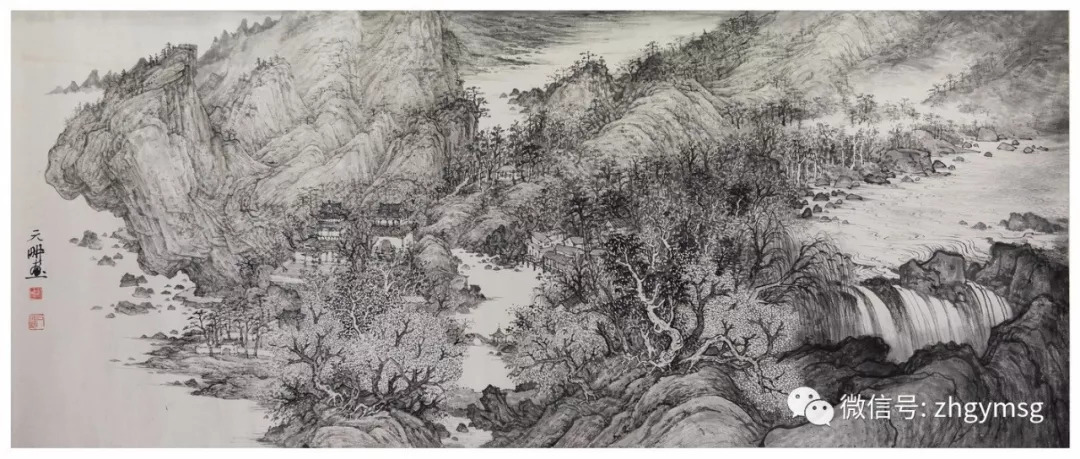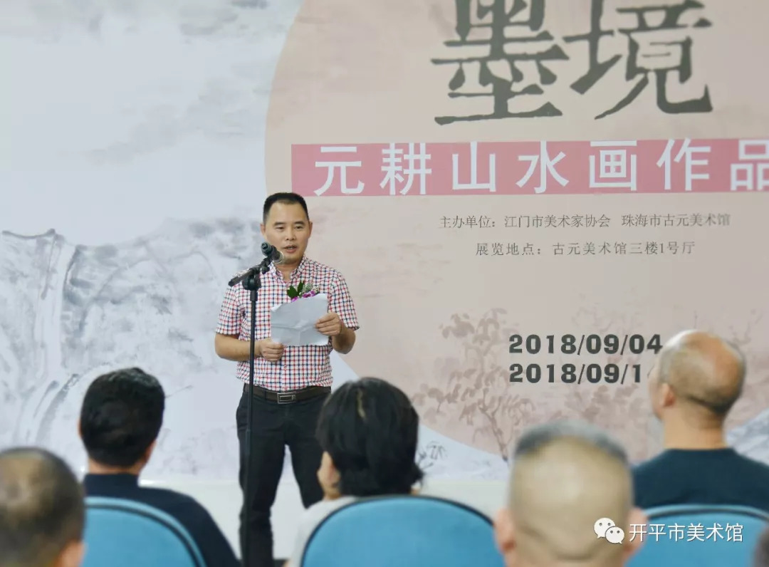9月4日下午,由珠海市古元美術館、江門市美術家協會主辦的“云山墨境——元耕山水畫作品展”在古元美術館舉行。開平市文聯主席馮永勝,開平市美術館館長李強穩等受邀出席畫展開幕式。本次展覽展出元耕山水畫作品100余幅。 古元美術館館長劉春潮先生致辭 江門市美術館館長王暢懷先生致辭 開平市文聯主席馮永勝先生致辭 藝術家元耕先生致辭 元耕原名甄潤球,臻易堂主,廣東開平人。1988年高中畢業于開平一中,1992年廣州美術學院本科畢業,獲文學學士學位。2010-2012年在中央美術學院中國畫學院攻讀綜合材料繪畫研究究生課程,師從胡偉、姚鳴京等老師,主修山水畫。好書法研易修道,出版有《元耕山水畫集》等多本畫冊并多次舉辦個人的書畫陶瓷展覽,作品頗受收藏界人士鑒賞。曾任職大學,臻易堂國學藝術館館長?,F居北京、職業書畫家。 部分作品欣賞: 湘西寫生一 113cm*54cm 湘西寫生之二 75cm*53cm 叱石浮屠 107cm*35cm 煙寺瓊林圖 168cm*70cm 坐觀云起 138cm*34cm 李家山水墨寫生 68cm*49cm 太行之上 128cm*248cm 臺山南村寫生 水墨寫生 李家山水墨寫生