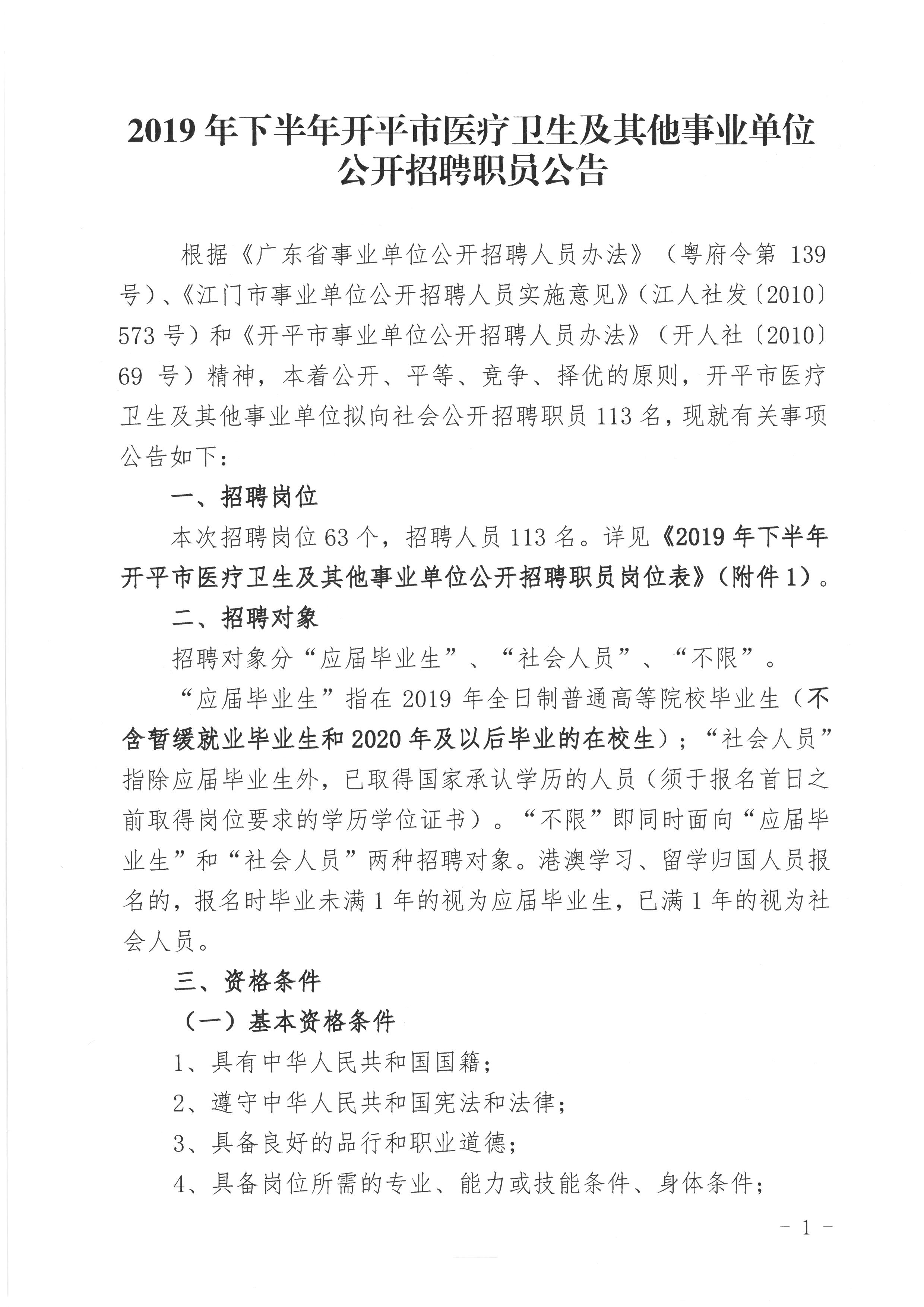 2019年下半年開平市醫(yī)療衛(wèi)生及其他事業(yè)單位公開招聘職員公告