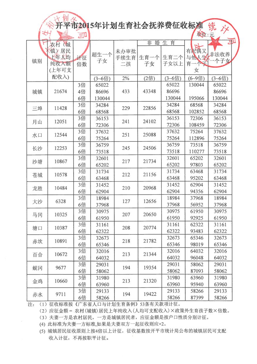關于印發《開平市2015年計劃生育社會撫養費征收標準》的通知(開衛字[2015]89號)