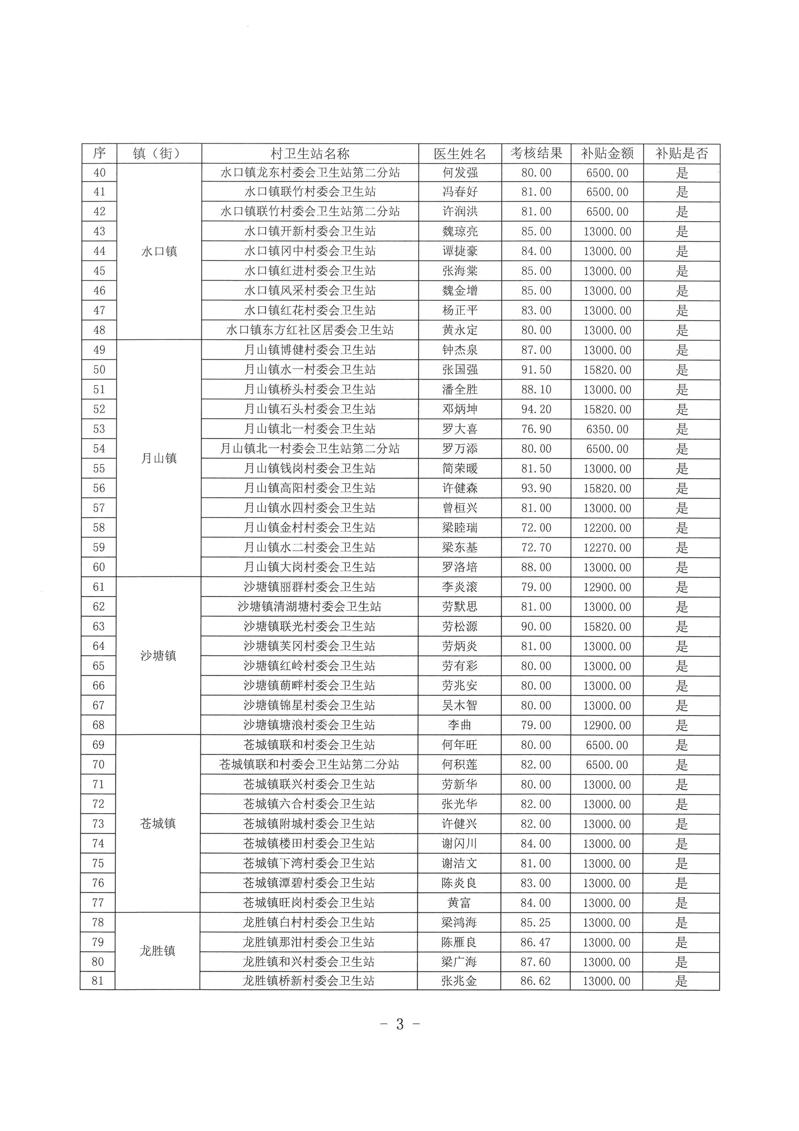 關于2016年度財政補貼村衛生站醫生名單的公示