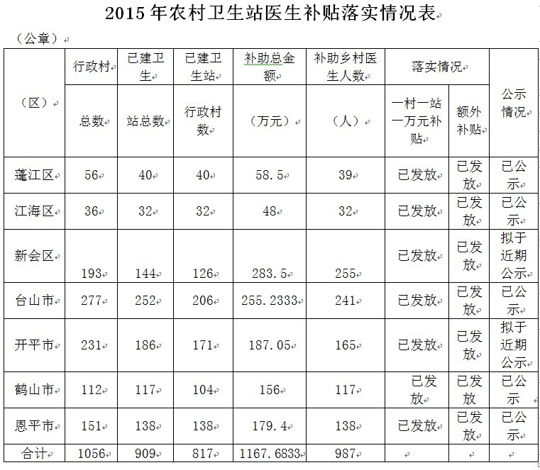 2015年我市共對817個行政村的987名鄉村醫生發放補貼1167.6萬元。補貼資金落實情況和領取補貼的鄉村醫生名單在江門市及各市、區衛生和計劃生育局網站上公示,接受社會監督。如對補貼情況有異議,請向江門市衛生和計劃生育局反映,反映情況的書面材料或電話要用真實姓名,并請留下聯系電話,以便受理。