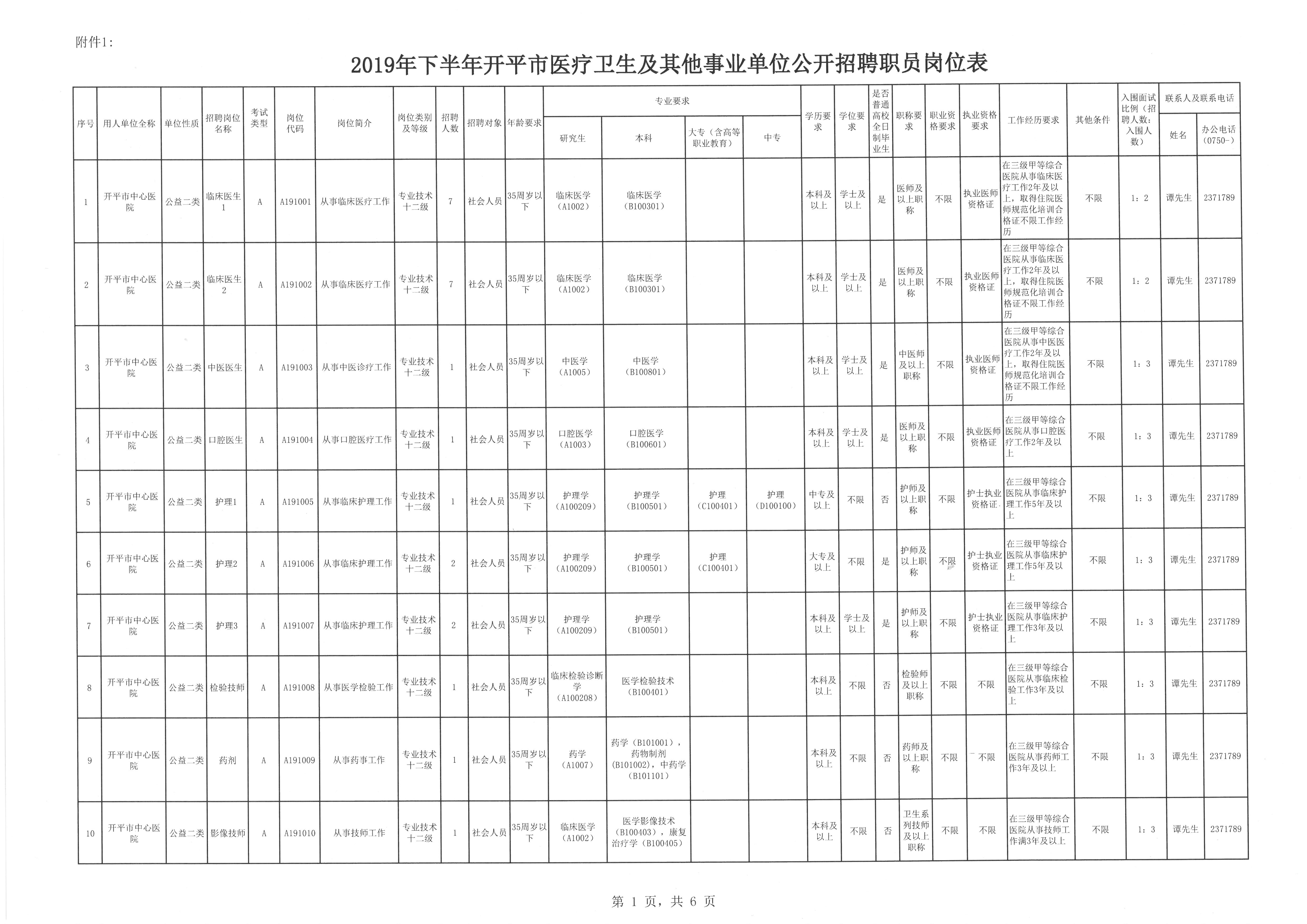 2019年下半年開平市醫(yī)療衛(wèi)生及其他事業(yè)單位公開招聘職員公告