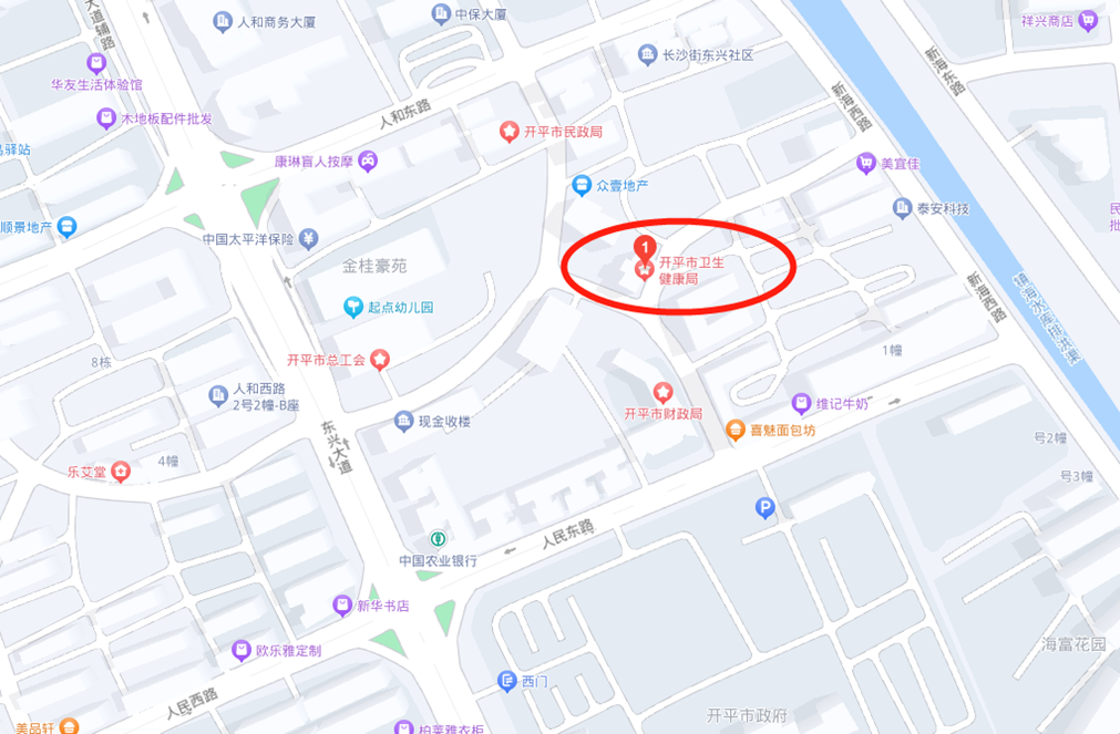 開平市衛生健康局(地址:開平市長沙人和東路12號5幢),面試地點交通圖詳見附件2