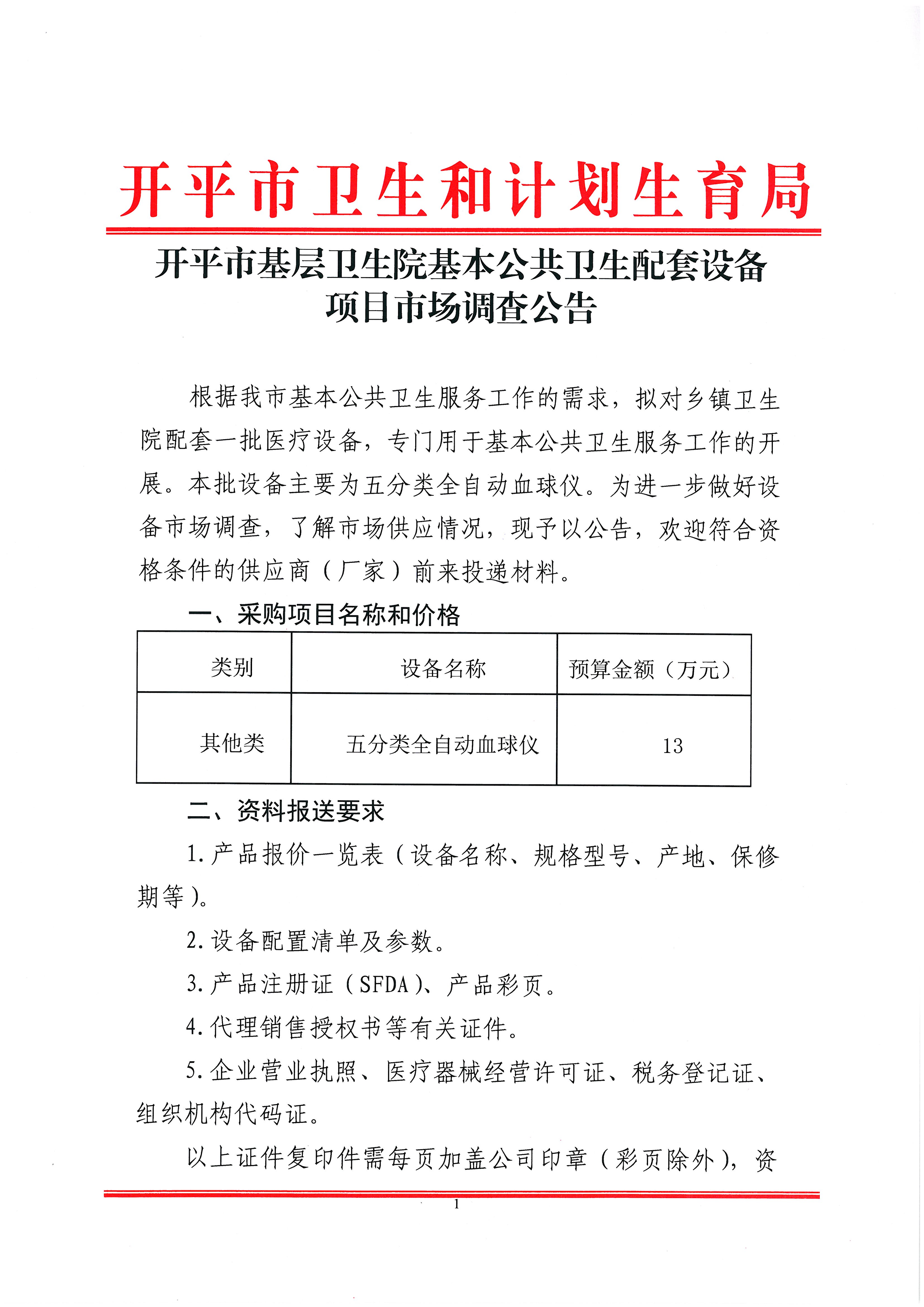 【3-15】開平市基層衛生院基本公共衛生配套設備項目市場調查公告