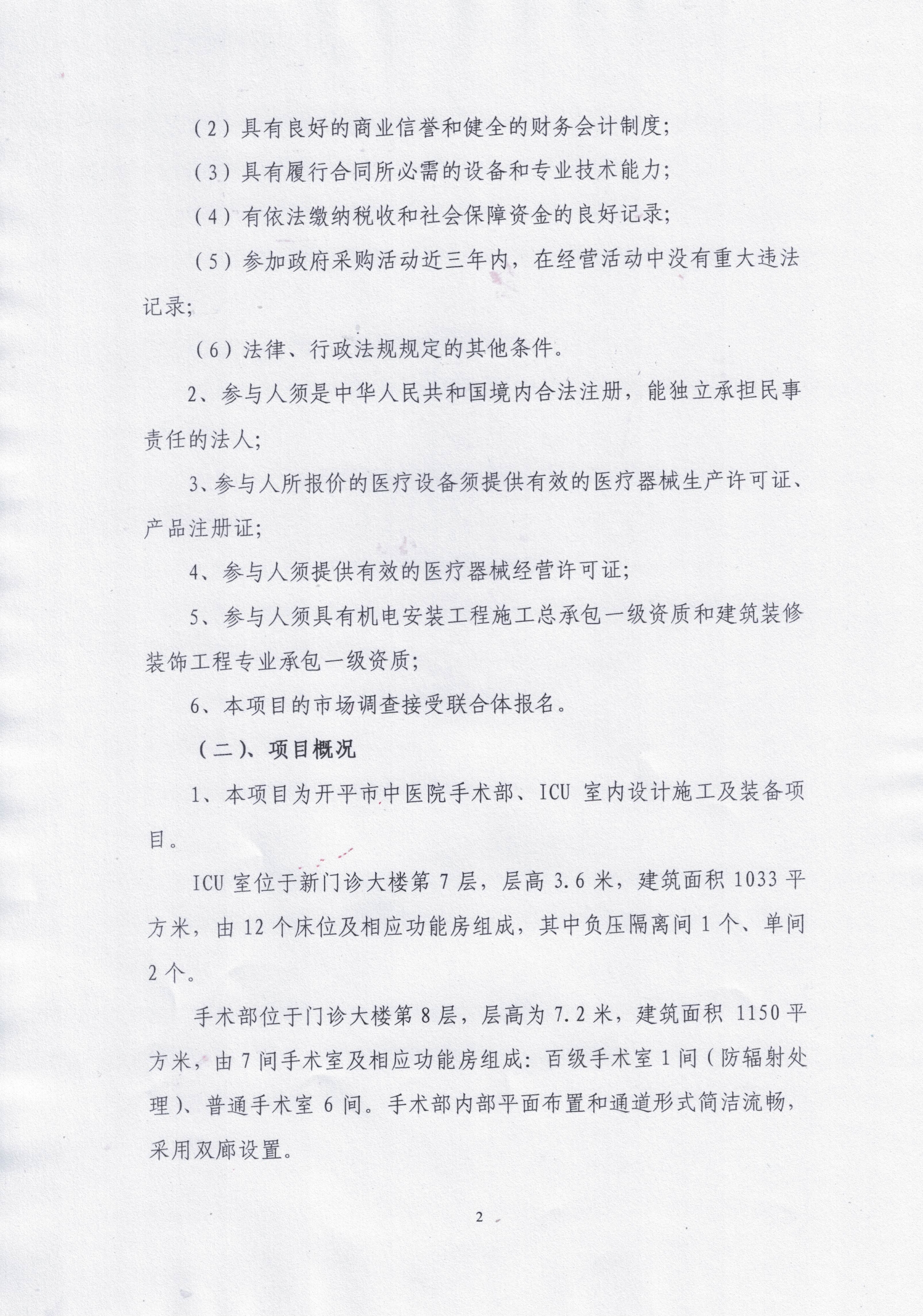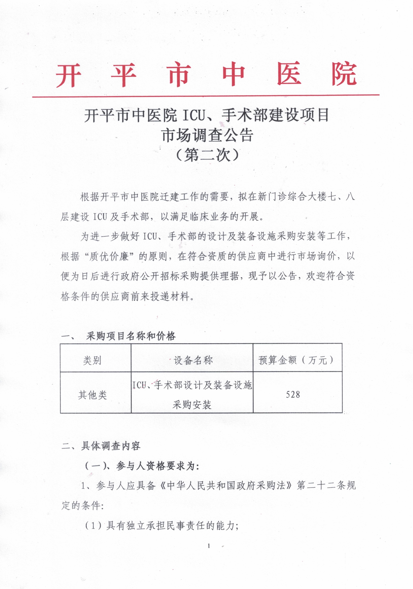 [9-20]開(kāi)平市中醫(yī)院ICU、手術(shù)部建設(shè)項(xiàng)目市場(chǎng)調(diào)查公告(第二次)