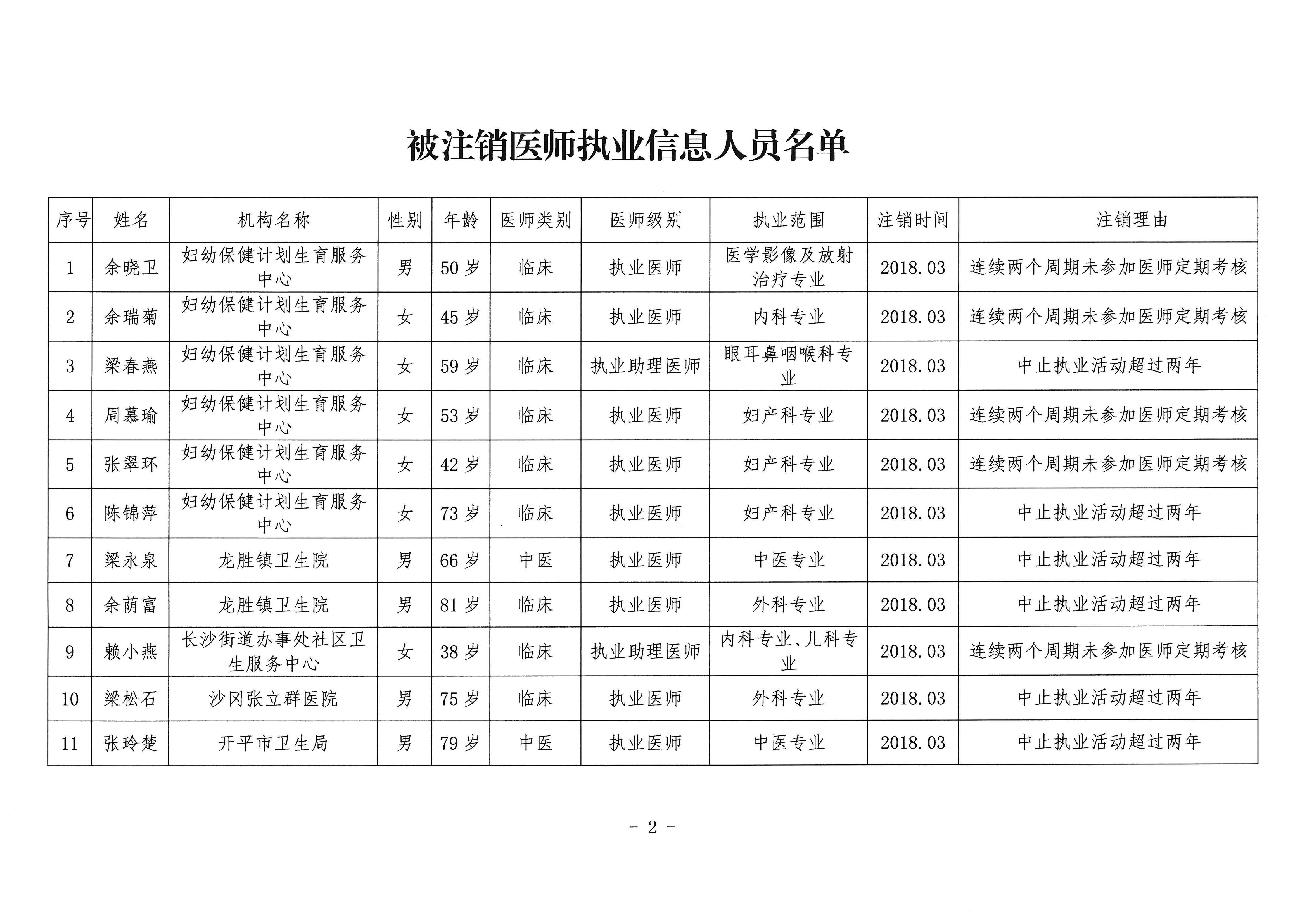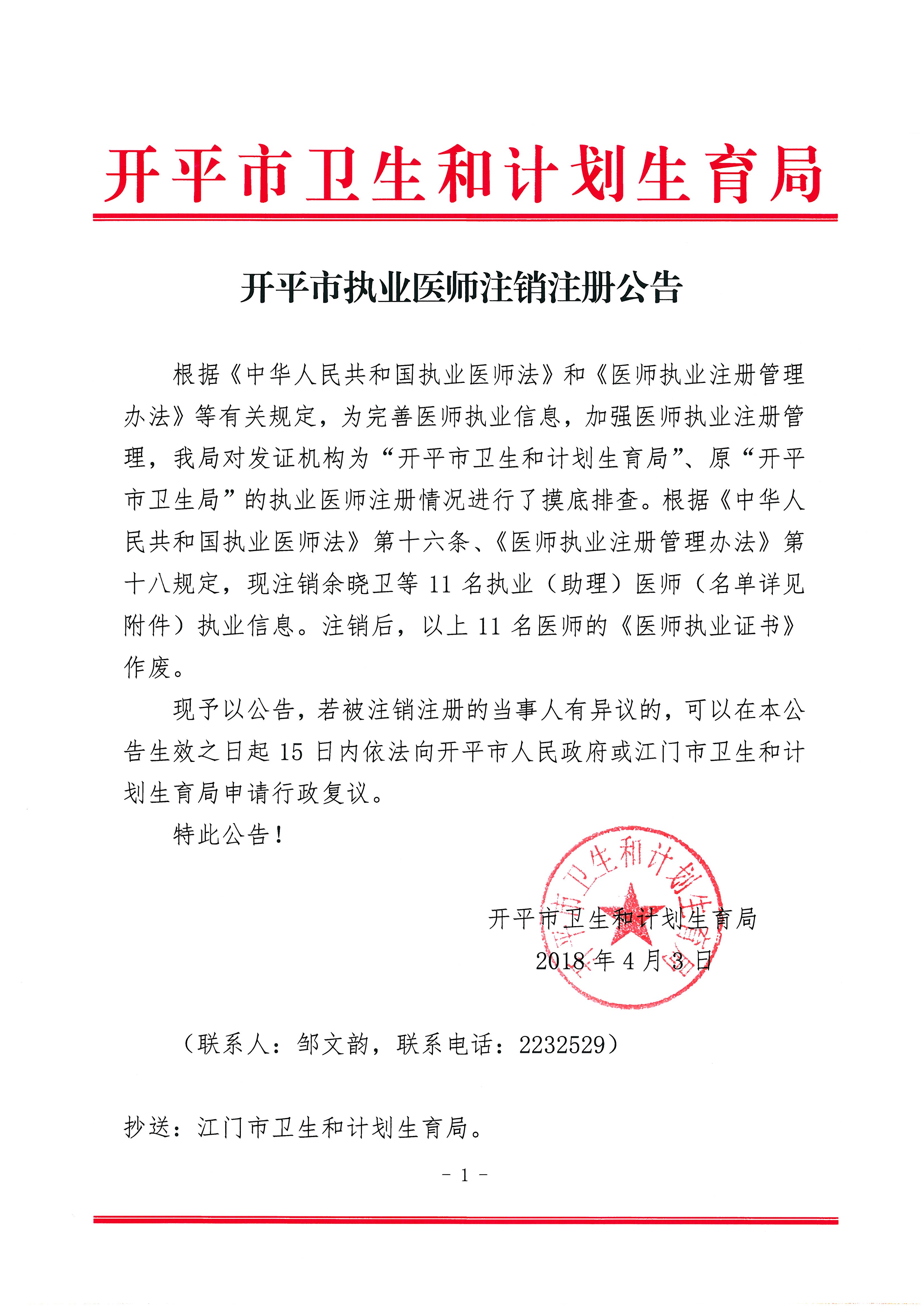 開平市執業醫師注銷注冊公告