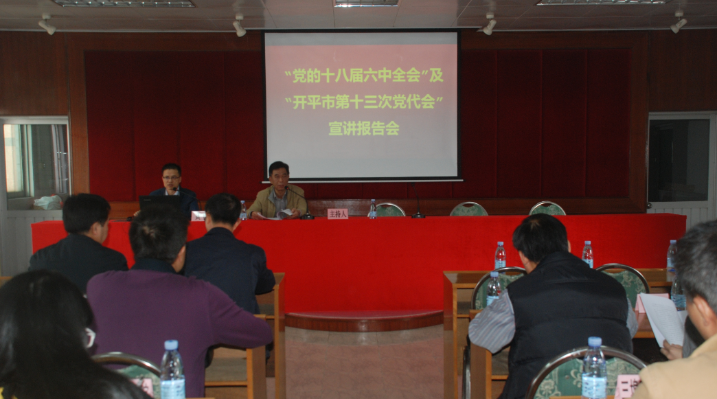 學習會邀請開平市委黨校教研室主任、開平市委“黨的十八屆六中全會”及“開平市第十三次黨代會”精神宣講團成員黃濤老師作了宣講報告。黃濤老師從黨的十八屆六中全會的重大意義、全面加強和規范黨內政治生活、全面落實黨內監督責任等三個層面,對黨的十八屆六中全會精神進行了深入分析和詳細解讀。同時圍繞開平市第十三次黨代會提出指導思想和奮斗目標,形象生動地分析解讀了黨代會精神,并對落實黨代會精神提出了很好的思路和方法。報告既有理論的高度,又緊密結合實際;既圍繞中心,又突出重點,對于全體干部系統學習全會精神和黨代會精神,深刻領會全面從嚴治黨的新思想、新論斷、新舉措,具有重要指導意義。