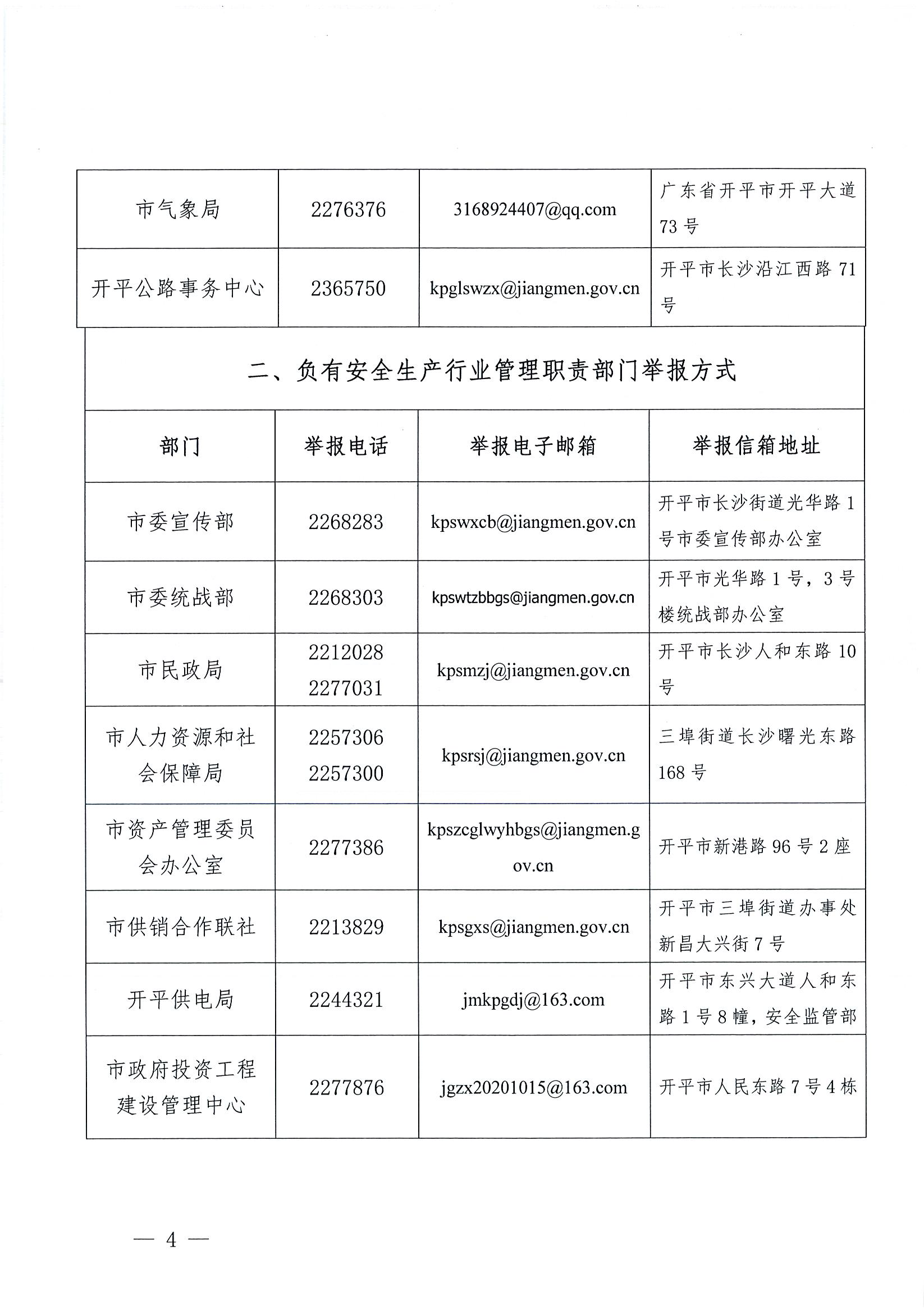 關于公布安全生產違法行為和安全生產事故舉報途徑的公告