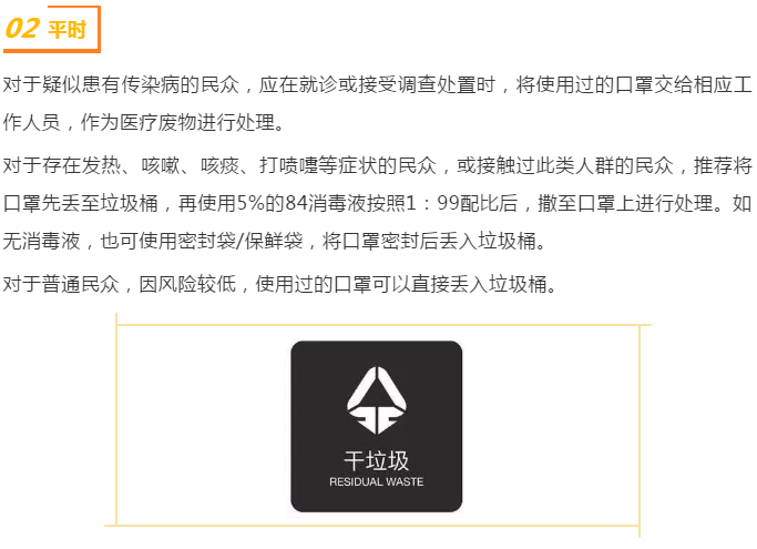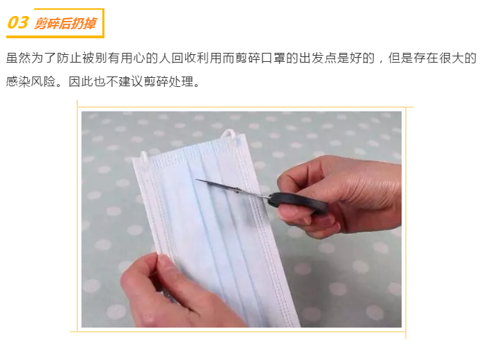 關于新型冠狀病毒感染的肺炎,想知道的看過來(七)最近兩天,不斷有小伙伴問“用過的口罩,沾滿了細菌、病毒,建議不要隨意丟棄”,甚至擔心被別有用心的回收利用,并給出了解決辦法“拿開水燙一下、定點焚燒、剪碎了再扔”。(來源:微信公眾號“上海疾控”。編輯:袁子藝)