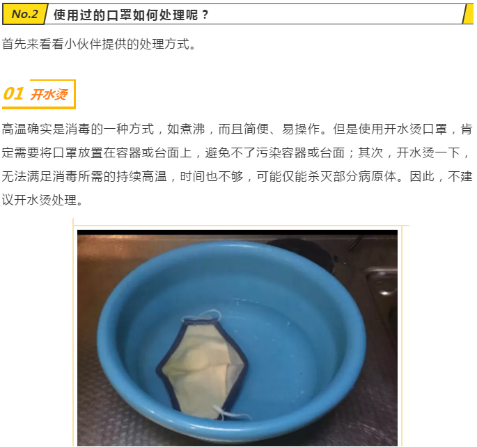 最近兩天,不斷有小伙伴問“用過的口罩,沾滿了細菌、病毒,建議不要隨意丟棄”,甚至擔心被別有用心的回收利用,并給出了解決辦法“拿開水燙一下、定點焚燒、剪碎了再扔”。