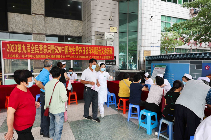為貫徹落實《健康中國行動(2019-2023年)》及《國民營養(yǎng)計劃(2017-2023年)》,加快推進合理膳食行動,促進國民健康飲食習慣的形成和鞏固,培養(yǎng)健康選擇、健康飲食行為,將合理膳食行動落實到時實處,提高公眾對食物營養(yǎng),合理膳食的認知。在2023年全民營養(yǎng)周到時來臨之際,開平市中心醫(yī)院圍繞--合理膳食、食養(yǎng)是良醫(yī)主題開展義診活動。 5月17日上午,廣東省營養(yǎng)學會進行全省聯(lián)動線下義診,開平市中心醫(yī)院于當天由內(nèi)分泌科、營養(yǎng)科和婦科聯(lián)合組織多學科聯(lián)合義診,在醫(yī)院門診樓門口,推廣普及中國居民膳食指南核心信息,提高患者及群眾的營養(yǎng)素養(yǎng),并提供體重管理、減肥計劃、不孕不育等咨詢,并免費測血壓、測血糖、進行體型評估。義診現(xiàn)場氣氛熱烈,得到廣大市民的好評。
