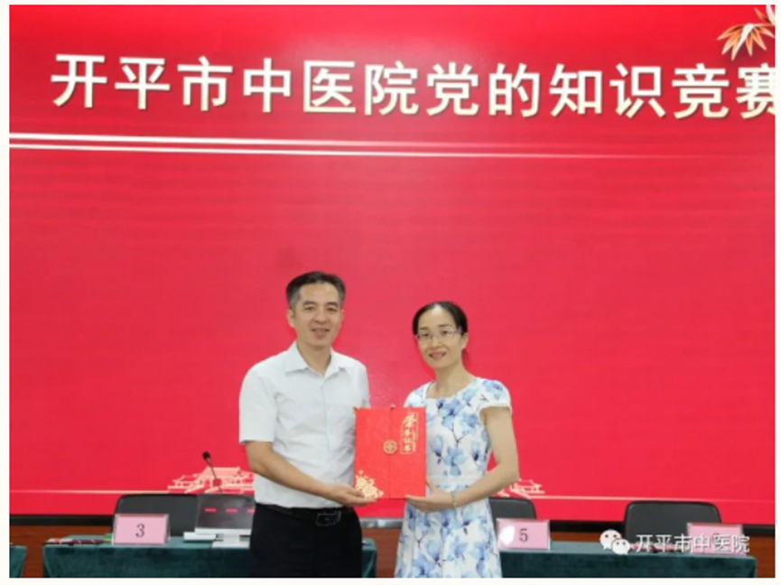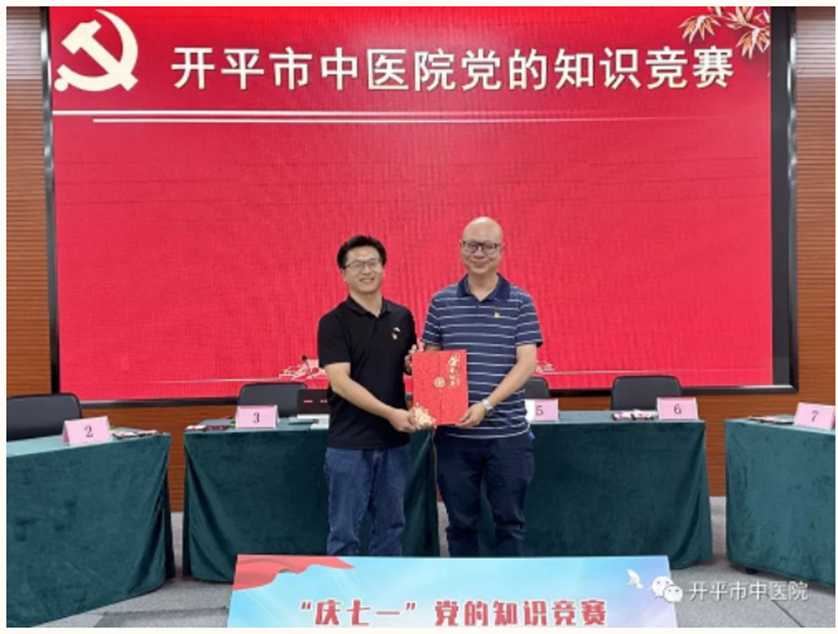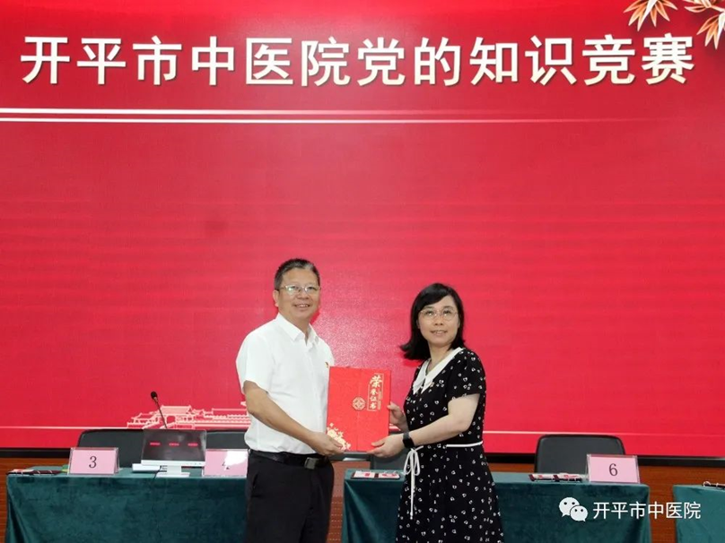 同心筑夢,永跟黨走!為慶祝黨的生日,增強廣大黨員責任感和使命感,進一步深化黨建工作,6月26日晚上,開平市中醫院黨委舉辦慶“七一”黨的知識競賽,14位選手及7個團隊登臺競技,一展風采。 競賽活動在總院多功能廳進行,市衛健局黨組成員蘇黎明出席活動,醫院黨政領導班子成員及百余名黨員參加。 競賽設置個人賽和團隊賽,分必答題、搶答題兩種類型,題目包括黨的基本知識、黨的二十大知識、黨史知識、聽紅歌猜歌名、看圖說史等,內容豐富,知識覆蓋面較廣。 參賽團隊精神飽滿,默契配合。選手們沉著冷靜,應答如流。 場上比分交替上升,扣人心弦。 黨員們熱情高漲,紛紛為各自支持的隊伍打CALL,掌聲、歡呼聲此起彼伏,整個比賽過程精彩紛呈,氣氛嚴肅卻不失活躍。 經過激烈角逐,方曉虹、周露、陳琰妃分別獲得個人賽一等獎、二等獎、三等獎;陳志堯、鄧素玲、梁思敏、劉偉健、羅裕津等5人獲優勝獎。團隊賽,第七黨支部獲得一等獎,第一黨支部獲得二等獎,第六黨支部獲得三等獎。 頒獎儀式 市衛健局黨組成員蘇黎明及醫院黨政領導班子成員為獲獎個人和團隊頒獎。 個人賽 ▲黨委副書記、院長胡敏超為個人賽一等獎獲得者頒獎 ▲黨委委員、副院長陳緣超為個人賽二等獎獲得者頒獎 ▲副院長余健成為個人賽三等獎獲得者頒獎 ▲黨委委員、黨政辦公室主任周建洲為個人賽優勝獎獲得者頒獎 團隊賽 ▲市衛健局黨組成員蘇黎明為團隊賽一等獎頒獎 ▲黨委委員、副院長勞梅新為團隊賽二等獎頒獎 ▲黨委委員、黨政辦公室主任周建洲為團隊賽三等獎頒獎 “你們展示了扎實的知識功底和出色的臨場反應能力,祝賀你們。”醫院黨委副書記、院長胡敏超講話,對獲獎個人和團隊表示熱烈的祝賀,他指出,競賽活動既檢驗了黨員干部的知識儲備,又增強了團隊的凝聚力和戰斗力,希望全體黨員干部不斷提高政治站位,凝聚智慧和力量,以黨建引領醫院高質量發展,為百姓健康護航。