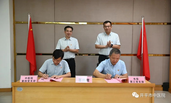 來源:開平市中醫院 為搭建醫企黨建交流合作平臺,做好信息化智慧化醫院建設工作。11月8日下午,開平市中醫院黨委副書記、院長胡敏超帶隊到中國電信開平分公司開展“黨建翼聯”結對共建活動。 結對共建 活動中,開平市中醫院黨政領導胡敏超、陳緣超、周建洲與中國電信開平分公司領導劉勇、梁煉忠、梁活光、劉偉權舉行了座談會,開平市中醫院黨委副書記、院長胡敏超與中國電信開平分公司黨委書記、總經理劉勇分別介紹了各自黨組織的基本概況和黨建工作開展情況。雙方表示,將以此次黨建共建結對合作為契機,積極探索創新黨建活動新形式,發揮各自優勢,統籌雙方資源,推動雙方黨建實現資源互享、互利共贏、共同發展。 開平市中醫院第四黨支部和中國電信開平分公司第三黨支部建立黨建結對關系。今后,雙方以支部共建為平臺,深入交流、相互促進,不斷擴大黨建結對“朋友圈”,發揮黨建引領強大合力。 胡敏超講話 劉勇講話 簽約儀式 在大家的見證下,開平市中醫院第四黨支部書記譚偉雄同志與中國電信開平分公司第三黨支部書記張懷韜同志代表雙方簽訂“黨建翼聯”結對共建協議。 會后,雙方黨員參觀中國電信開平分公司信息化展廳,并觀看中國電信在醫療云、數據機房建設、網絡安全保障等項目案例介紹,對紅色電信的發展史及中國電信在信息化建設方面的實力、優勢有了更直觀的了解。 通過本次簽約,雙方結對共建達成合作共識,為進一步深化醫企互動,實現黨建業務深度融合搭建了橋梁。下一步,雙方將堅持以共建促黨建,以黨建促發展,創新工作模式,提高服務創新能力,譜寫黨建工作與合作共贏新篇章。