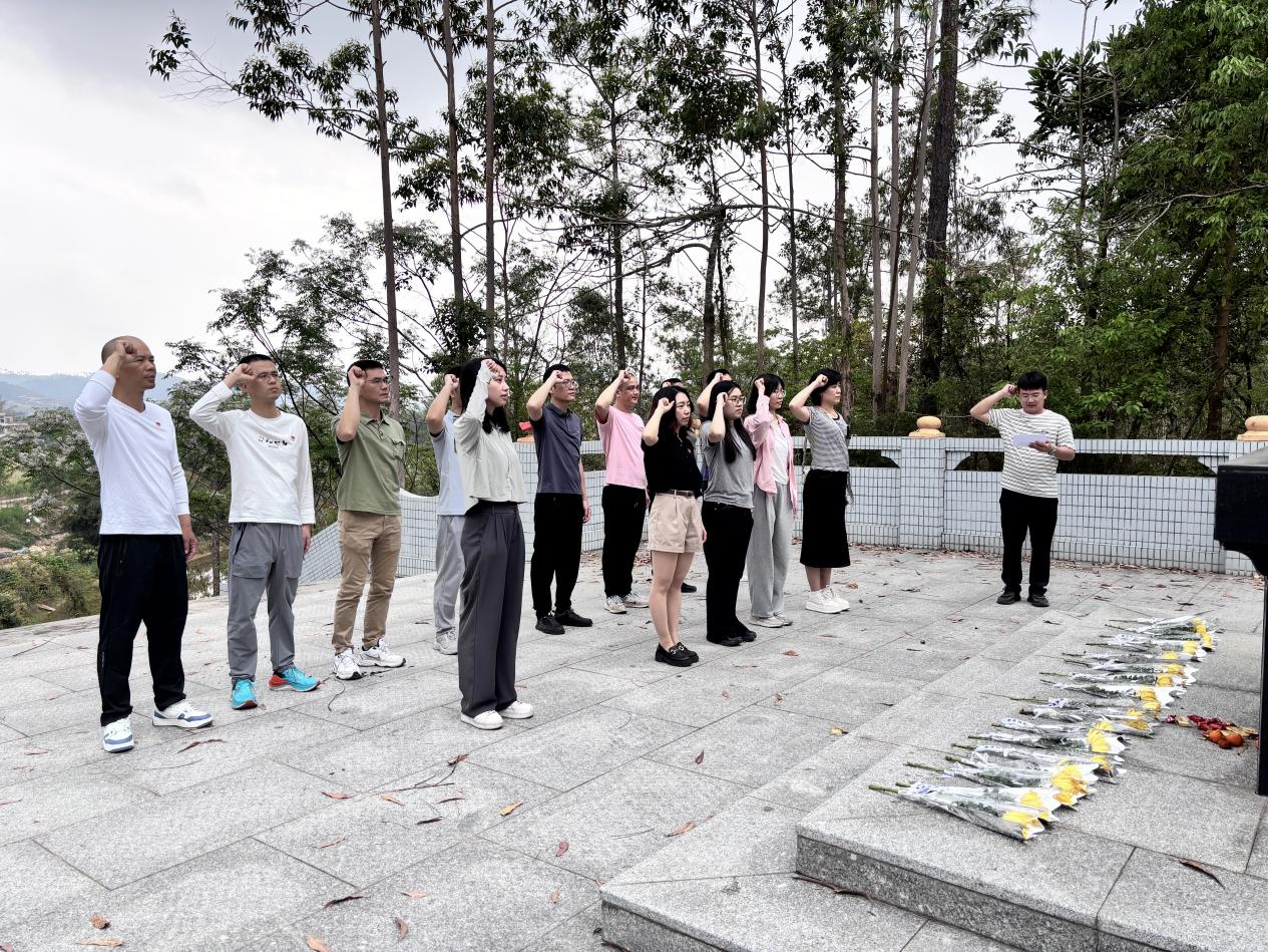 我志愿加入中國共產黨,擁護黨的綱領......”在鮮紅的黨旗下,全體黨員莊嚴舉起右手,重溫入黨誓詞,鏗鏘有力的誓言在青山翠柏中回蕩。