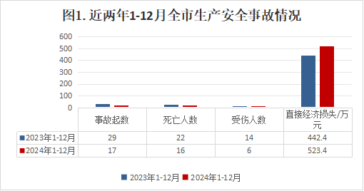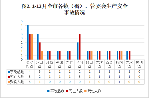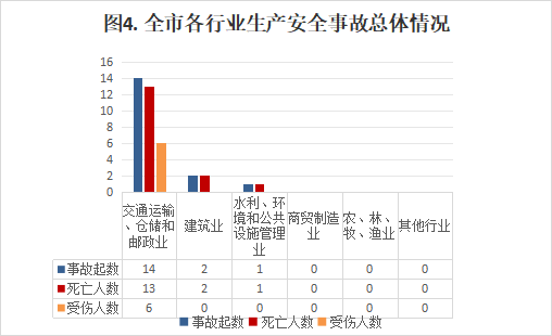 內容摘要 2024年1-12月,全市發生生產安全事故17起、死亡16人、受傷6人、直接經濟損失約523.4萬元。 一、1-12月生產安全事故概況 全市發生生產安全事故17起、死亡16人、受傷6人、直接經濟損失523.4萬元,同比分別減少12起、減少6人、減少8人,增加81萬元,事故起數、死亡人數、受傷人數、直接經濟損失同比分別下降41.4%、下降27.3%、下降57.1%、上升18.3%。 二、各鎮(街)、翠山湖管委會事故情況 長沙街道發生交通運輸、倉儲和郵政業事故3起,水利、環境和公共設施管理業1起;水口鎮發生交通運輸、倉儲和郵政業事故2起、建筑施工事故1起;沙塘鎮發生交通運輸、倉儲和郵政業事故1起;蒼城鎮發生建筑施工事故1起;龍勝鎮發生交通運輸、倉儲和郵政業事故1起;馬岡鎮發生交通運輸、倉儲和郵政業事故2起;塘口鎮發生交通運輸、倉儲和郵政業事故1起;赤坎鎮發生交通運輸、倉儲和郵政業事故1起;百合鎮發生交通運輸、倉儲和郵政業事故1起;蜆岡鎮發生交通運輸、倉儲和郵政業事故1起;赤水鎮發生交通運輸、倉儲和郵政業事故1起;其他鎮沒有發生生產安全事故(三埠街道、月山鎮、大沙鎮、金雞鎮、翠山湖管委會)。 三、全市各行業事故情況 (一)各行業事故占比情況 全市共發生生產安全事故17起,其中交通運輸、倉儲和郵政業14起,占82.3%;建筑施工2起,占11.7%,環境和公共設施管理業1起,占5%,其他行業未發生生產安全事故。 (二)各行業事故基本情況 (1)農林牧漁業。未發生事故,去年同期未發生事故。 (2)采礦業。未發生事故,去年同期未發生事故。 (3)商貿制造業。未發生事故,去年同期未發生事故。(4)建筑業。發生2起事故,死亡2人,去年同期 發生事故1起,事故起數和死亡人數同比分別上升100%、上升100%。 (5)交通運輸、倉儲和郵政業。發生事故14起(其中道路運輸14起)、死亡13人,去年同期發生事故24起、死亡18人,事故起數和死亡人數同比分別下降41.7%、下降27.8%。 (7)水利、環境和公共設施管理業。發生1起事故, 死亡1人,去年同期未發生事故,事故起數和死亡人數 同比分別上升100%、上升100%。 (8)其他行業。未發生事故。 四、1-12月生產安全事故特點 1.道路交通領域安全總體平穩,但依然嚴峻。1-12月,全市發生道路運輸事故14起、死亡13人、受傷8人,事故起數、死亡人數、受傷人數同比分別下降41.1%、下降27.8%、下降57.1%,事故起數、死亡人數實現“雙下降”,但是占比全市生產安全事故的82.3%,形勢依然嚴峻。 2.建筑施工行業安全形勢要引起重視。1-12月,全市建筑施工行業發生2起生產安全事故,死亡2人,事故起數、死亡人數同比上升100%、上升100%,特別是近年來,涉及光伏安裝項目工程增多,高處作業隨之增多,安全風險也隨之增加,要引起重視,采取有效措施,開展全方位、動態化的風險辨識和隱患排查治理,防范行業領域生產安全事故。 3.農林牧漁業等行業領域安全總體形勢平穩。農林牧漁業和其他行業未發生生產安全事故,安全生產形勢平穩。 五、下一步工作措施 1.堅持安全發展,堅持“安全第一、預防為主、綜合治理”的方針。按照“黨政同責、一崗雙責、齊抓共管、失職追責”和“管行業必須管安全、管業務必須管安全、管生產經營必須管安全”的總要求,繼續加強對安全生產工作的領導,明確職責,落實責任,建立健全各項規章制度,進一步強化安全生產防范措施。 2.持續深入推進“打非治違”專項行動。根據市委、市政府的安排部署,嚴格掌握標準,通過突擊檢查、重點抽查、跟蹤檢查、聯合檢查等多種方式,有針對的嚴厲打擊非法違法生產經營建設行為。同時重點加強對道路運輸、危險化學品、建筑施工、城鎮燃氣等領域的安全監管,繼續實行日常監管與重點檢查相結合、重要時段檢查與專項督查相結合的安全監管辦法,查找和整改治理一批安全隱患,解決突出問題,加大對生產過程中各類違規、違法行為的打擊力度,促進全市安全生產形勢持續穩定向好。 3.加強安全教育宣傳,增強全民安全意識。大張旗鼓地宣傳《中華人民共和國安全生產法》等法律法規,堅持“安全第一、預防為主、綜合治理”方針,一方面要以多種形式加大安全生產宣傳力度,營造強大的輿論氛圍,增強全民安全意識;另一方面要督促企業落實安全生產主體責任,抓好安全生產教育培訓,嚴格落實安全操作規程,堅決杜絕不按操作規程開展工作的行為,將“安全無小事”的安全理念貫穿安全生產工作全過程,以更高的站位、更寬的視角不斷優化安全管理工作思路,持續推動安全生產風險管理向事前預防轉型。