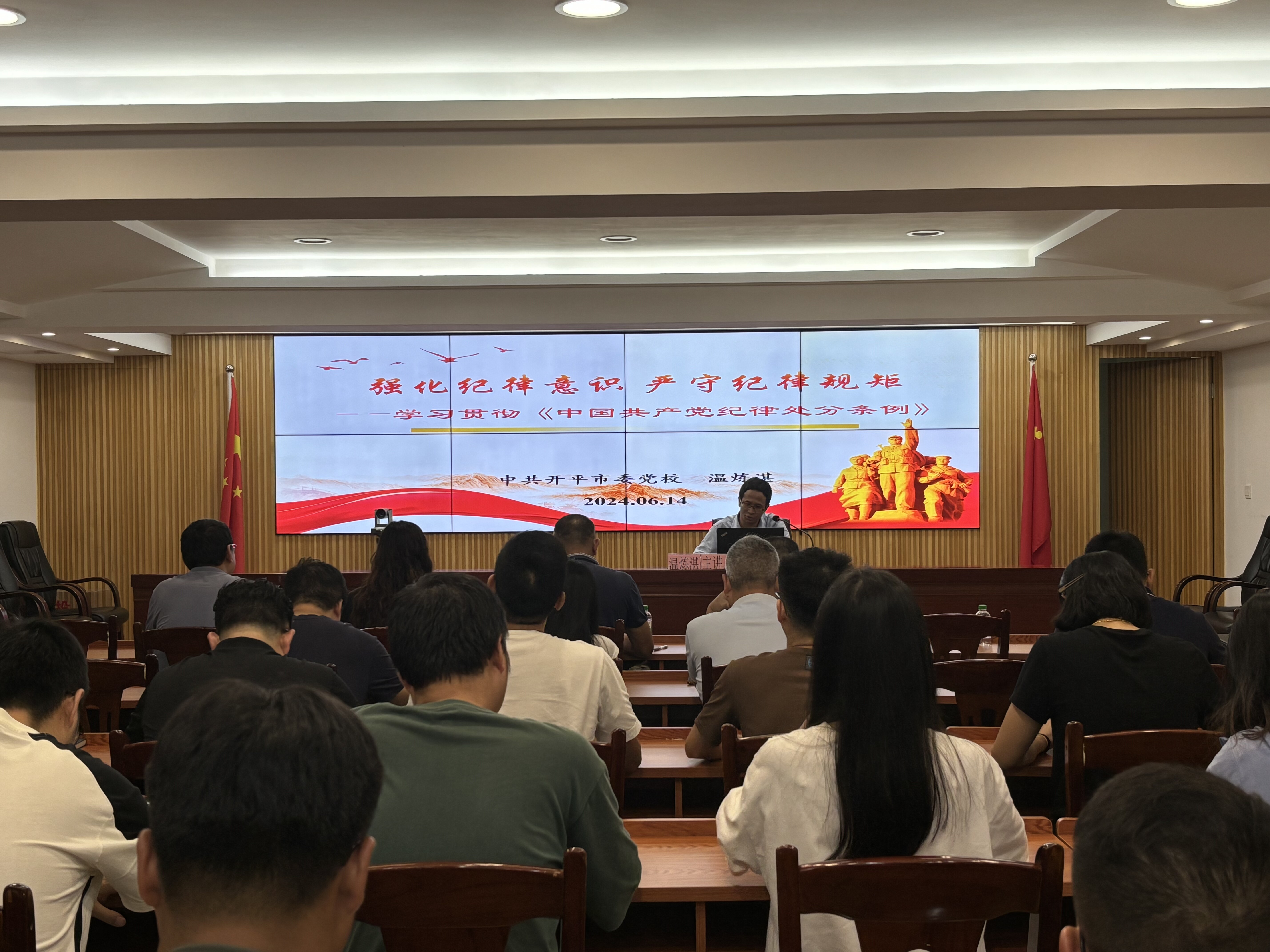 6月14日,市應(yīng)急管理局召開黨紀(jì)學(xué)習(xí)教育宣講活動,邀請市委黨校溫?zé)捳坷蠋熥鼽h紀(jì)學(xué)習(xí)教育主題宣講,局全體黨員干部、職工、大隊隊員共50人參加此次活動。 宣講課上,溫?zé)捳坷蠋熞浴?/span>強化紀(jì)律意識