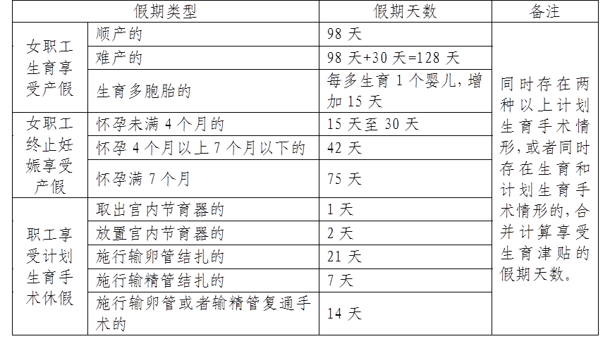 (2)生育津貼支付期限按照《廣東省職工生育保險規定》(第287號)文規定的產假期限執行。同時存在兩種以上計劃生育手術情形,或者同時存在生育和計劃生育手術情形的,合并計算享受生育津貼的假期天數。