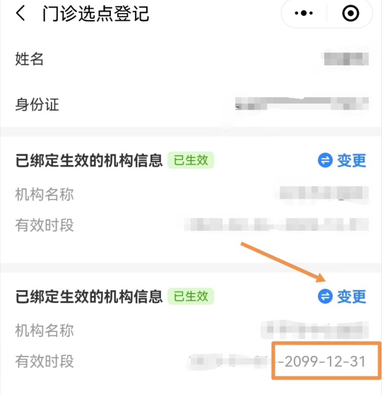 七、對目前有效且需要變更的門診定點醫療機構,點擊“變更”。