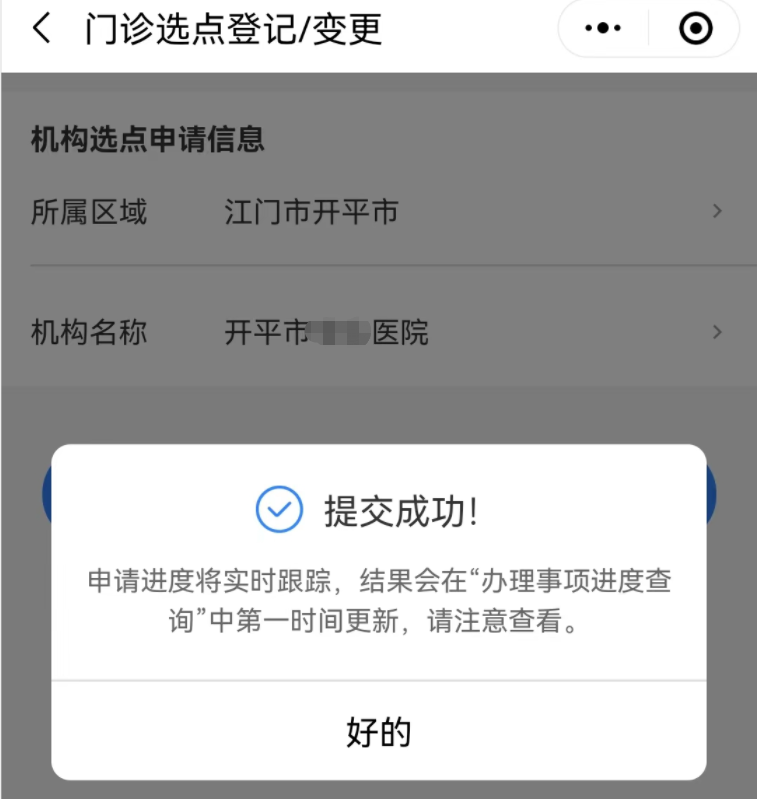 十、提示“提交成功”后可在“門診選點登記”頁面查看新的選點記錄。提示“提交失敗”需根據提示內容查明原因并更正操作方式。