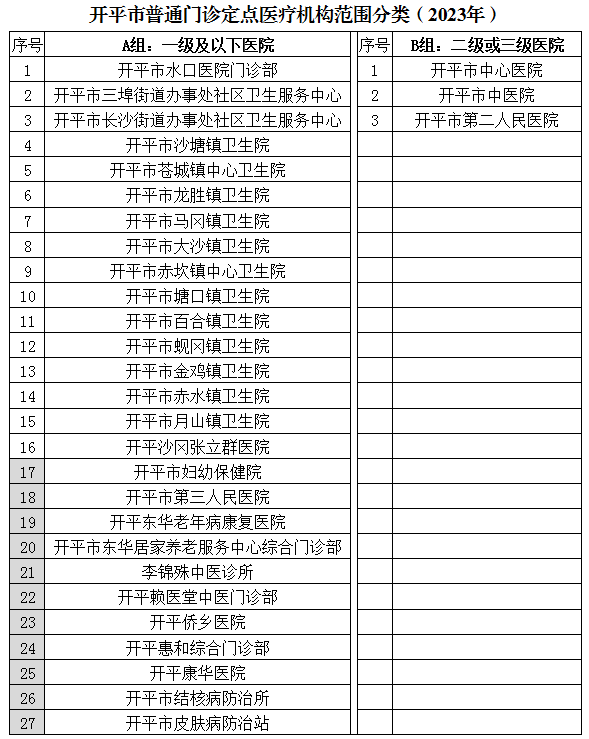 一、普通門診統籌定點醫療機構范圍按新規定分為兩類,分別為“一級及以下定點醫療機構”和“二級或三級定點醫療機構”,與2022年存在差異(開平市醫療機構分類見第4頁)。