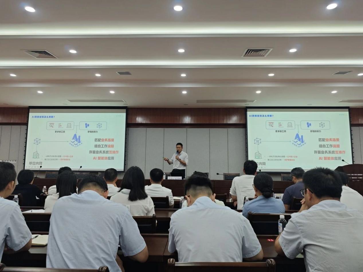 為深化對人工智能工具的理解、掌握和運(yùn)用,探索DeepSeek等先進(jìn)AI技術(shù)在產(chǎn)業(yè)中的創(chuàng)新應(yīng)用,推動企業(yè)數(shù)智化能力提升,6月18日下午,公控集團(tuán)舉辦了“AI發(fā)展趨勢與DeepSeek產(chǎn)業(yè)應(yīng)用”的專題培訓(xùn)。公控集團(tuán)領(lǐng)導(dǎo)班子成員、總部全體干部職工及各下屬單位相關(guān)負(fù)責(zé)人等100余人參加了學(xué)習(xí)。 培訓(xùn)邀請了中國移動通信集團(tuán)廣東有限公司開平分公司負(fù)責(zé)人紀(jì)增暉擔(dān)任主講嘉賓,圍繞AI發(fā)展概況、DeepSeek模型與功能實(shí)操、行業(yè)應(yīng)用實(shí)踐三大方面展開授課。課程結(jié)合數(shù)據(jù)可視化分析、AI輔助工程項(xiàng)目管理、智能搜索技術(shù)應(yīng)用等案例演示,深入分享AI前沿趨勢及行業(yè)落地經(jīng)驗(yàn),為企業(yè)數(shù)智化轉(zhuǎn)型提供可借鑒的實(shí)施路徑。 當(dāng)今社會,人工智能已快速滲透各行各業(yè),成為推動產(chǎn)業(yè)升級和數(shù)字化轉(zhuǎn)型的核心驅(qū)動力。此次培訓(xùn)緊密結(jié)合AI技術(shù)發(fā)展趨勢,在技術(shù)認(rèn)知與實(shí)踐應(yīng)用之間構(gòu)建了有效銜接,為公控集團(tuán)高質(zhì)量發(fā)展注入了新動能。通過系統(tǒng)學(xué)習(xí)AI前沿技術(shù)與DeepSeek創(chuàng)新應(yīng)用,不僅提升了干部職工智能化工具應(yīng)用能力,更為公控集團(tuán)各業(yè)務(wù)板塊AI融合提供了新思路,進(jìn)一步賦能企業(yè)高質(zhì)量發(fā)展。
