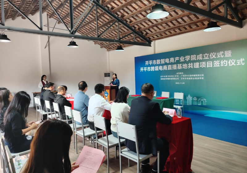 11月5日上午,開平市數智電商產業學院成立儀式暨開平市跨境電商直播基地共建項目簽約儀式在三埠街道荻海埠舉行,標志著開平市在深化產教融合、搶抓數字經濟與跨境電商發展方面邁出關鍵一步,為開平市產業升級與經濟高質量發展注入新動能
