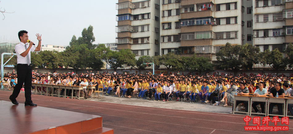 全校師生和學生家長4000余人聚會運動場認真聆聽演講