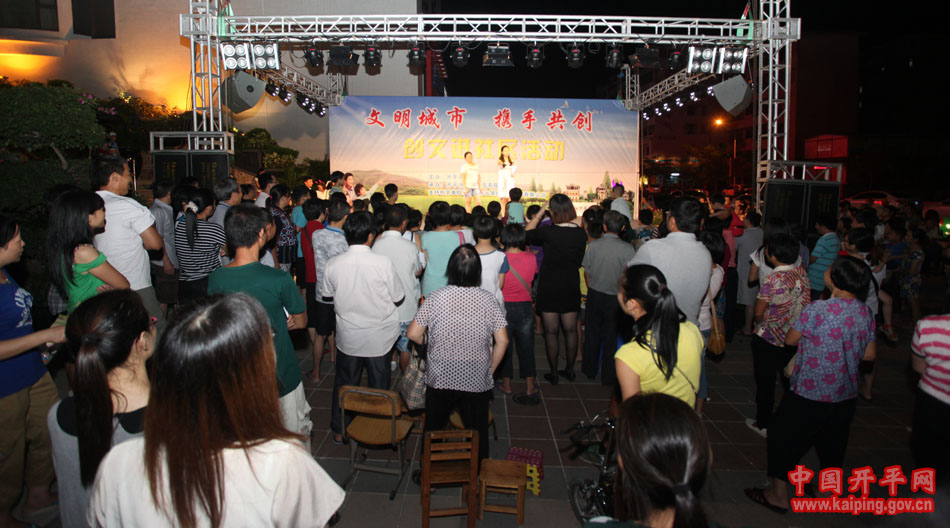 9月20日晚,開平市創文進社區活動在益華廣場對面某小區門口舉行,讓廣大市民參與創文、支持創文。