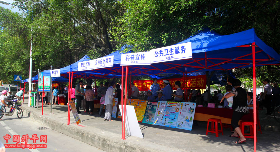 7月11日上午,創(chuàng)文宣傳活動走進三埠荻海社區(qū)。市公安局、衛(wèi)生局、科技局、司法局、文化館等部門在現場向市民宣傳創(chuàng)文、科普、法制、交通安全、公共衛(wèi)生等政策和知識,為市民提供免費法律咨詢、醫(yī)療保健等服務,還有文藝表演和創(chuàng)文知識有獎問答環(huán)節(jié)。豐富多彩的活動,活躍了社區(qū)創(chuàng)文氣氛,吸引眾多市民踴躍參與。