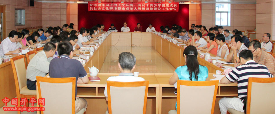 5月28日上午,開平市召開會議,了解各單位創文工作的推進情況,進一步部署落實創文“健康向上的人文環境”與“有利于青少年健康成長的社會文化環境”兩大測評項目工作,推動全市未成年人思想道德建設及關愛農村留守兒童工作。開平市委常委、市委宣傳部部長陳靖出席了會議。