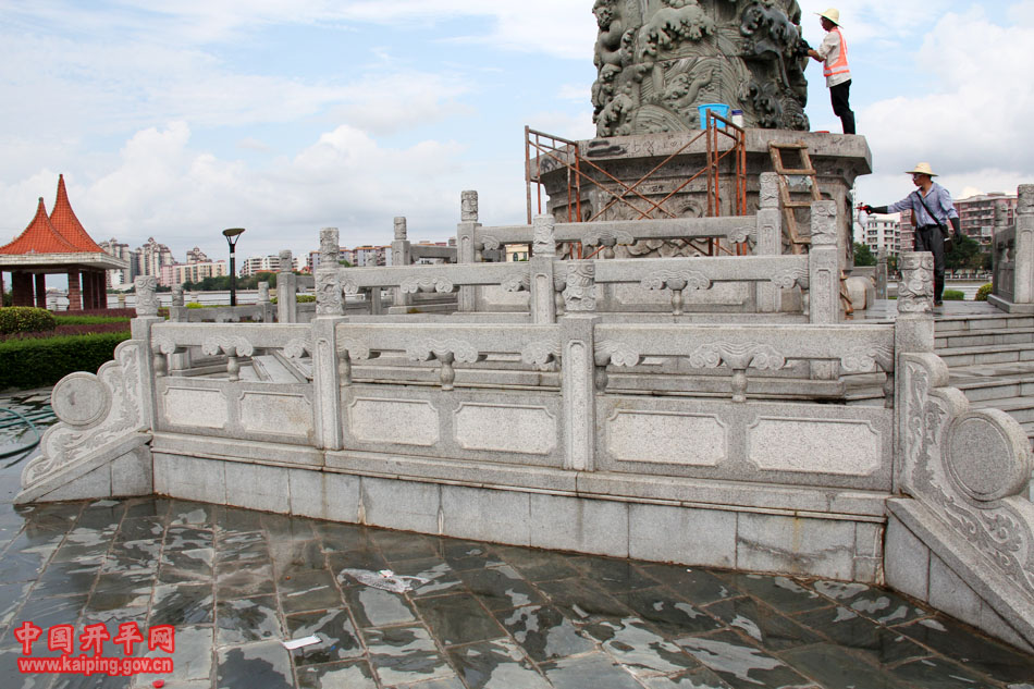 【創文在行動---美好家園之七】我市全面清洗城市廣場龍鳳石柱
