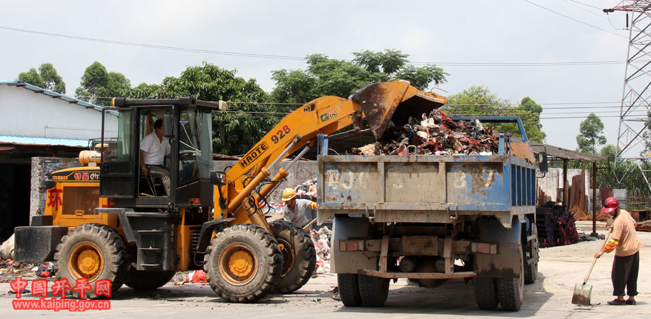 逕頭垃圾中轉站原來的作用只是收集逕頭城區部分的垃圾。按照開平市農村垃圾處理方案要求,各村(居)委會應在各村設置垃圾容器,鎮(街道)自行把收集到的垃圾運送到市垃圾場去處理。開平市環衛處副主任方錦安:“但是,在逕頭居委會的農村垃圾就這樣倒來這里。他們又不是倒進斗里,而是倒落地面,我們已經提醒他們很多次了,他們每次都沒有整改。一般10日左右就運一次垃圾出來這里,用簡易車、手扶機全倒到地面,很不合作。”