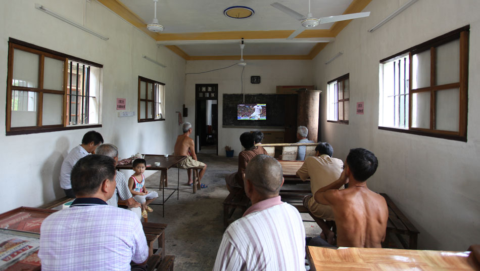 村民在修繕后的認養碉樓樹德樓內休閑娛樂