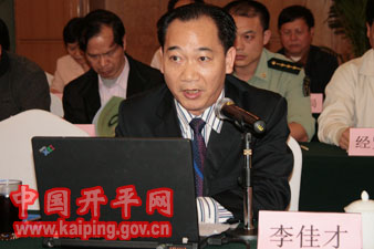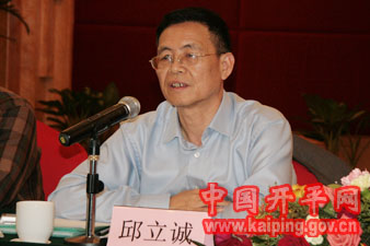 專家組組長、省考古所副所長邱立誠、江門市副市長李崴講話