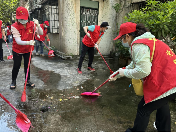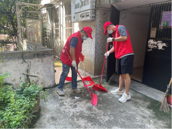 本次防控重點(diǎn)做好南島市場(chǎng)周邊人員密集區(qū)域的蚊蟲消殺和衛(wèi)生清潔工作。黨員義工們頂著炎炎烈日,手持清掃工具深入樓層樓道、街頭巷尾,對(duì)房屋周邊堆積的雜物、綠色植物隱蔽的垃圾、下水道淤積的污水進(jìn)行全面清理。在行動(dòng)過程中,黨員義工們還對(duì)居民家中的花盆、儲(chǔ)水容器等容易積水的地方及時(shí)清除;針對(duì)一些衛(wèi)生黑點(diǎn),通過翻墻爬梯進(jìn)行到底,深入清潔,清除的垃圾一袋接一袋、清理的積水一盆接一盆,盡最大的努力履行好防控責(zé)任和使命。
