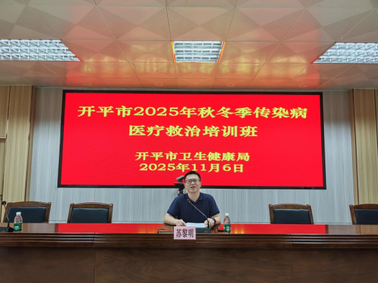 為切實做好我市秋冬季傳染病防治各項工作,持續(xù)提升醫(yī)務(wù)人員對重點傳染病的早期識別、規(guī)范診療等能力,11月6日下午,開平市衛(wèi)生健康局舉辦開平市2025年秋冬季傳染病醫(yī)療救治培訓(xùn)班,全市醫(yī)療機(jī)構(gòu)分管領(lǐng)導(dǎo)及相關(guān)科室負(fù)責(zé)同志參加培訓(xùn)。